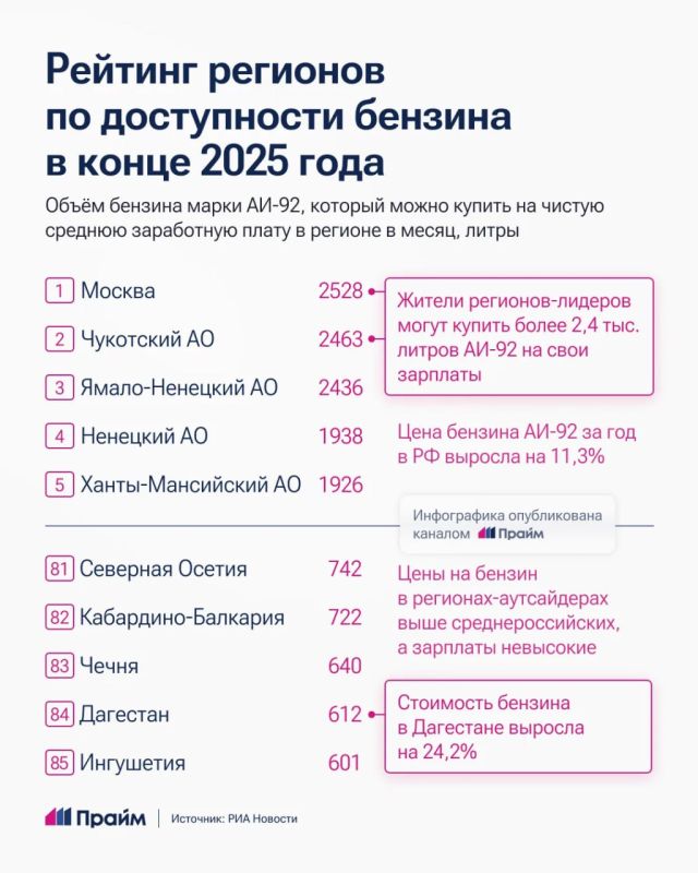 Москва возглавила рейтинг российских регионов по доступности бензина по итогам 2025 года.
