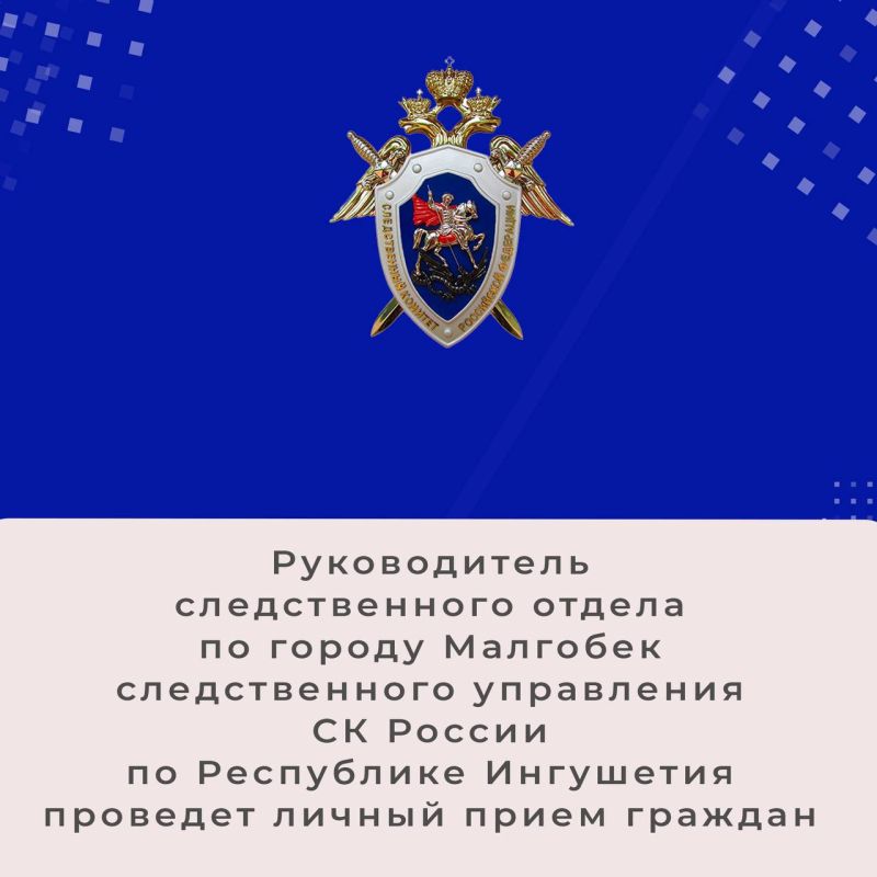 Уважаемые жители города Малгобек и Малгобекского района Республики Ингушетия, информируем вас о том, что 25 сентября 2025 года с 10:00 по 13:00 руководитель следственного отдела по городу Малгобек следственного управления СК России по Республике...
