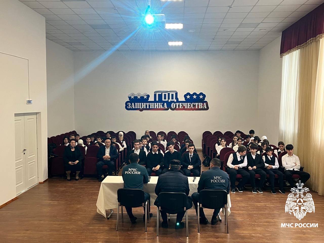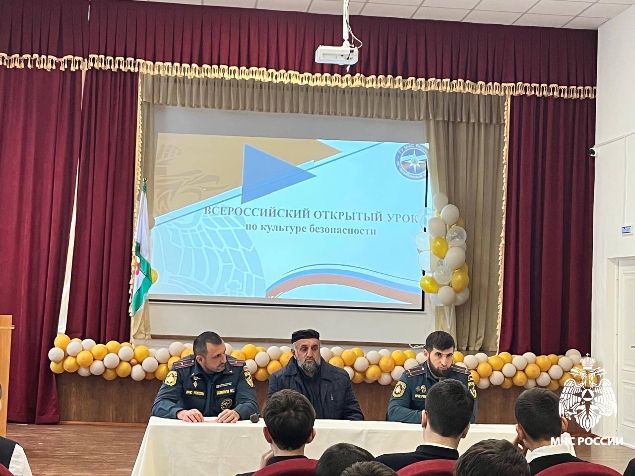 Инспекторы Мовлатгерей Дахкильгов и Иса Хазбиев объяснили школьникам основные задачи гражданской обороны, рассказали о происхождении средств индивидуальной защиты органов дыхания. Также был организован показ просветительских видеоматериалов и раздача памяток с номерами телефонов экстренных служб и информацией, как себя вести в случае ЧС.