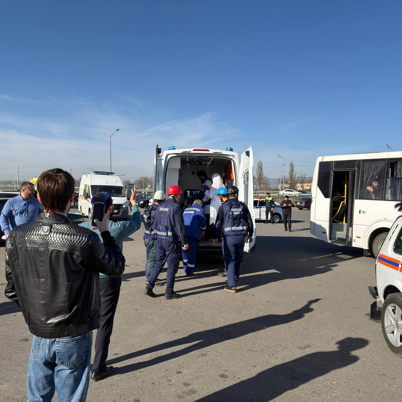 В рамках учений по легенде произошло дорожно-транспортное происшествие: столкнулись пассажирский автобус и автомобиль.