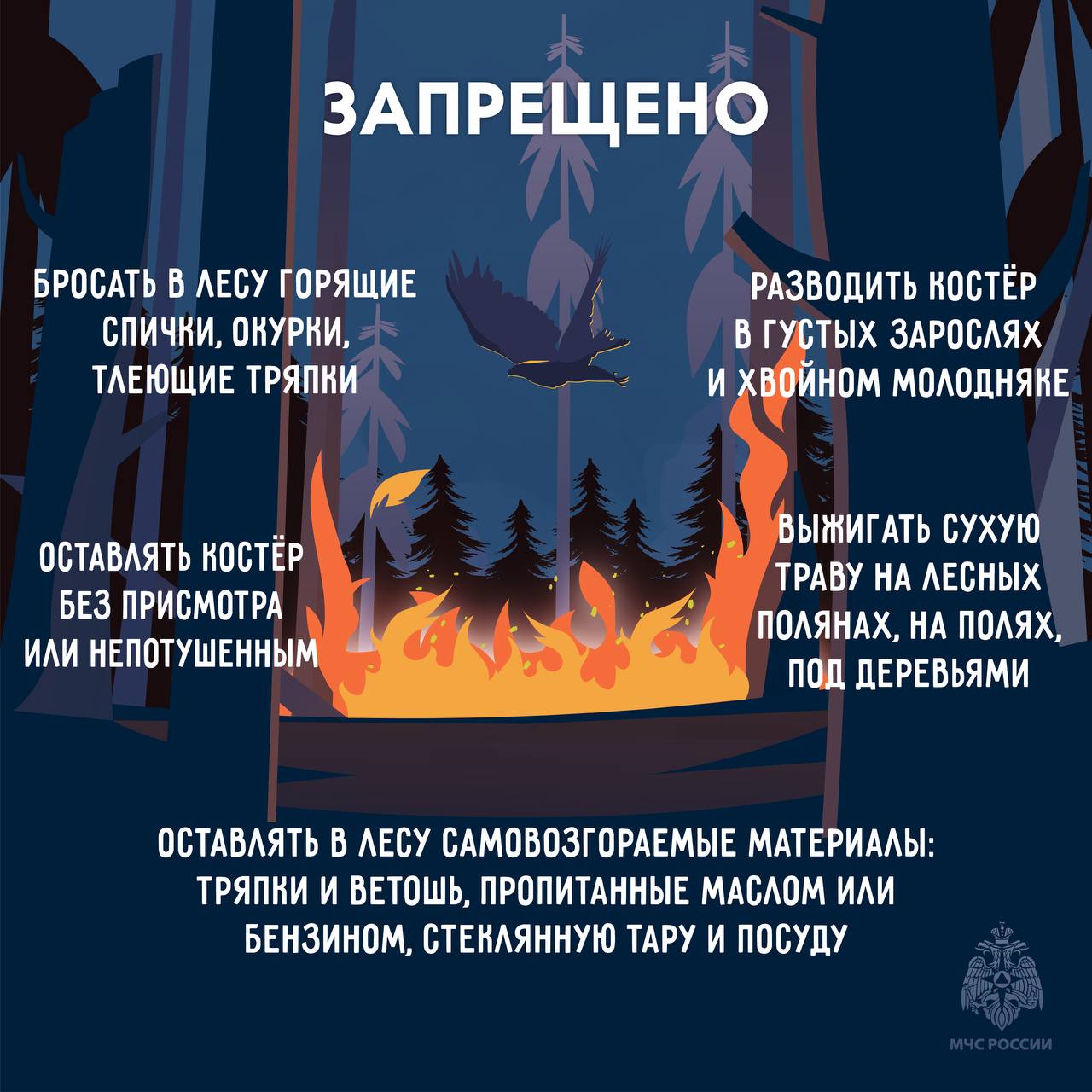 не разводить костёр в лесу или на торфянике, не поджигать сухую траву;