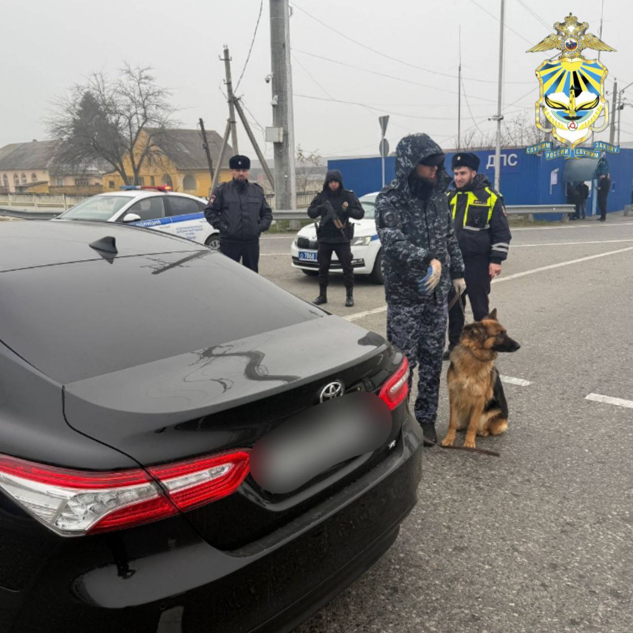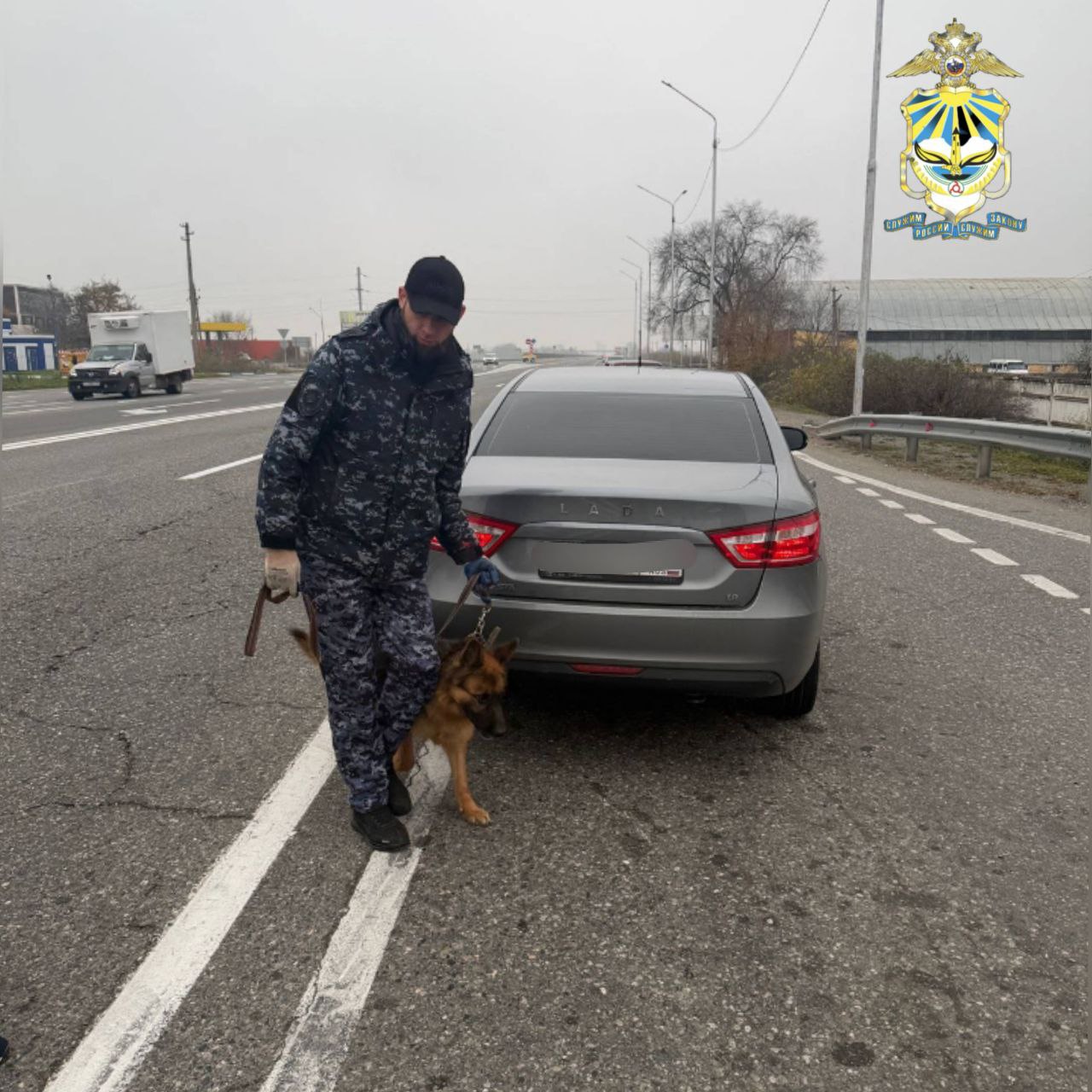 Госавтоинспекторы совместно с кинологическими расчетами МВД проверили автомобили на въезде в республику на наличие незаконно хранящихся предметов вооружения.