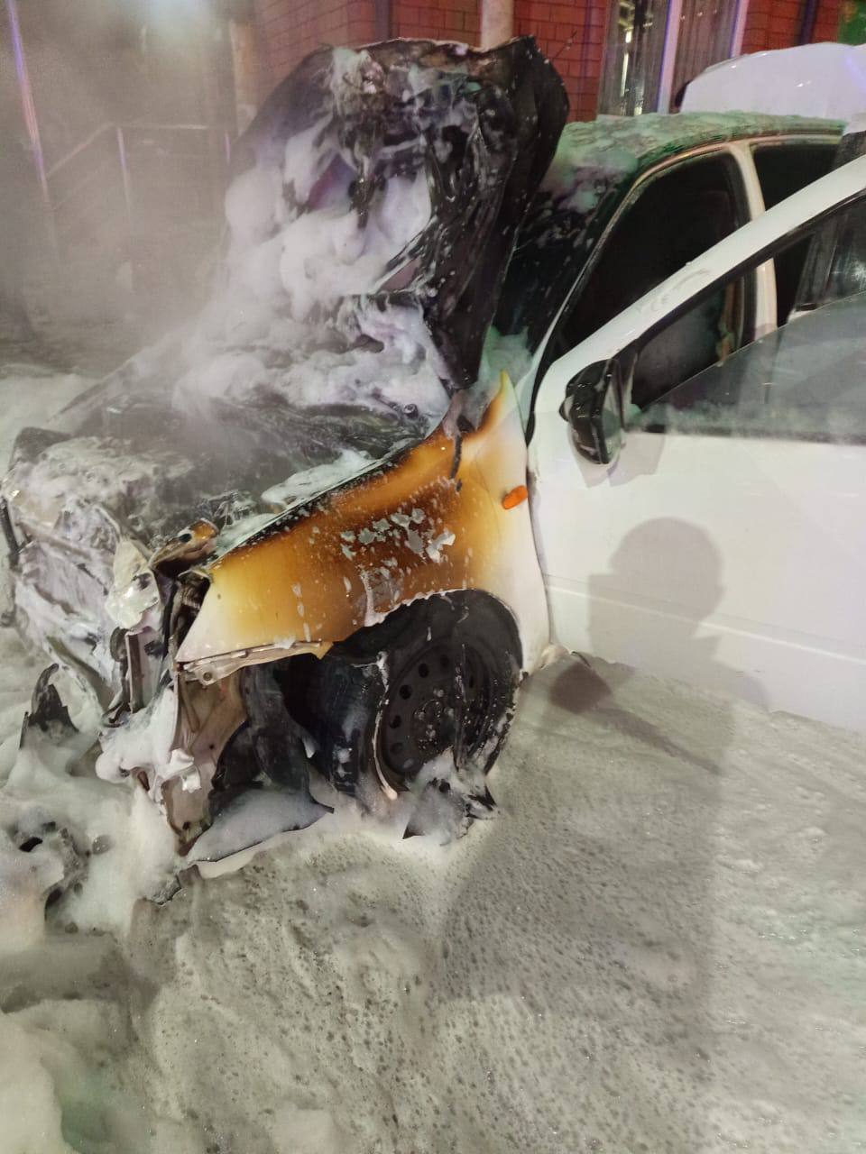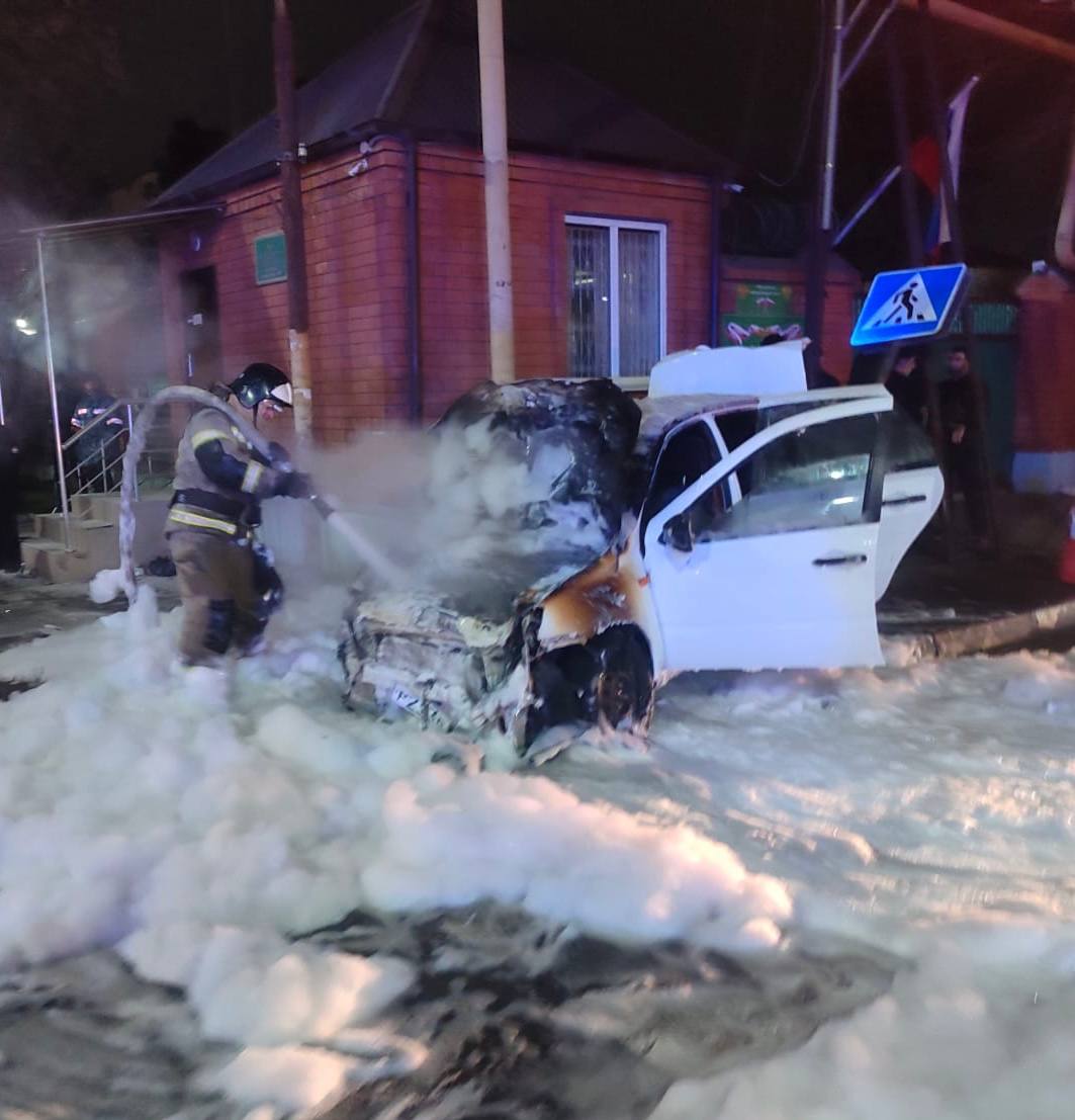 По прибытии на место происшествия, спасатели поисково-спасательного отряда «Карабулак» установили, что произошло столкновение двух автомобилей марки «Лада Гранта» и «Лада Приора», — в результате которого один из автомобилей загорелся.