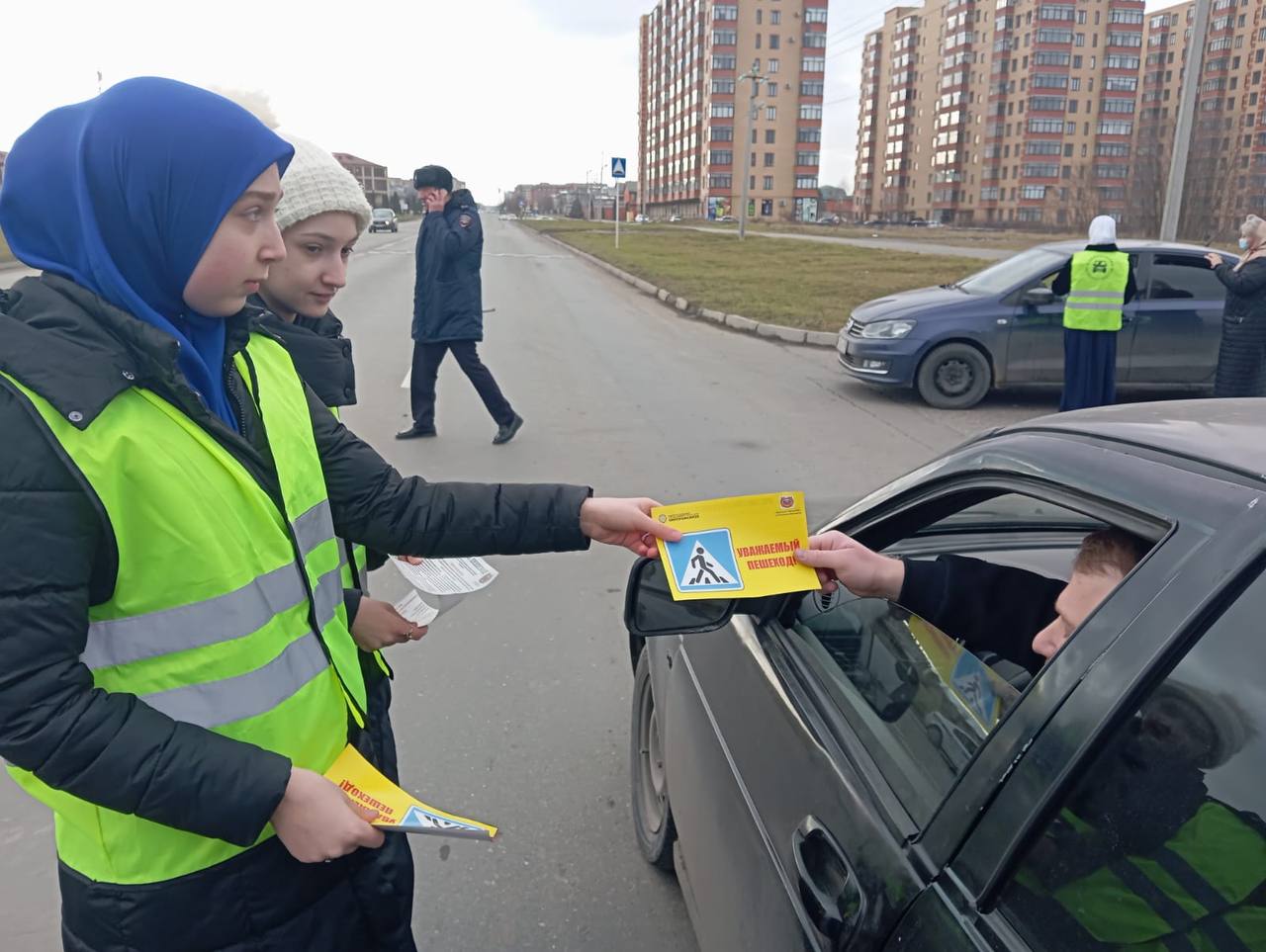 Школьники вручали информационные памятки автовладельцам с напоминанием пропускать пешеходов на пешеходных переходах, а также быть осторожными при движении во дворах и жилых микрорайонах, вблизи расположения школ, детских садов, чтобы сохранить жизнь и здоровье пешим участникам дорожного движения.