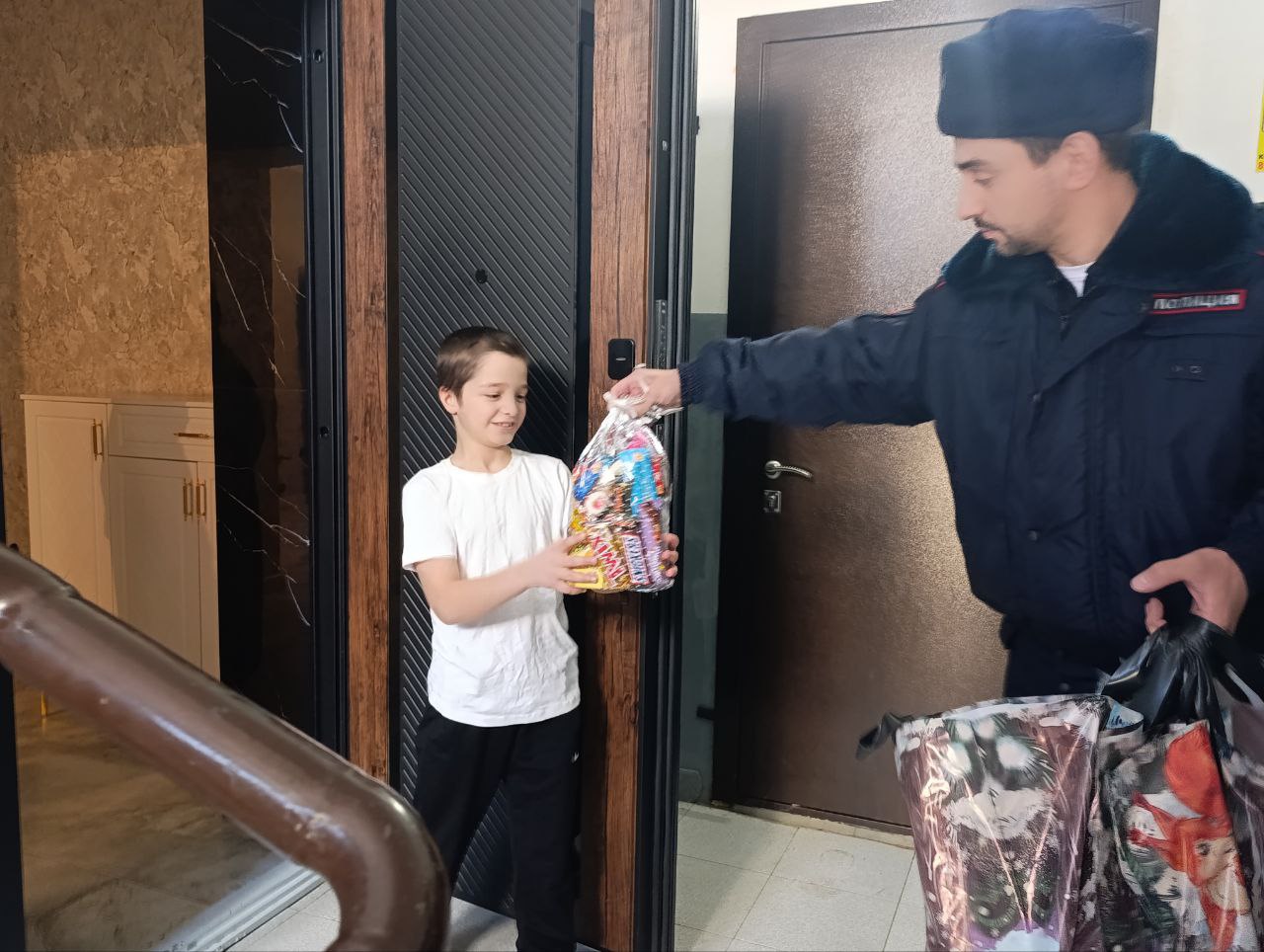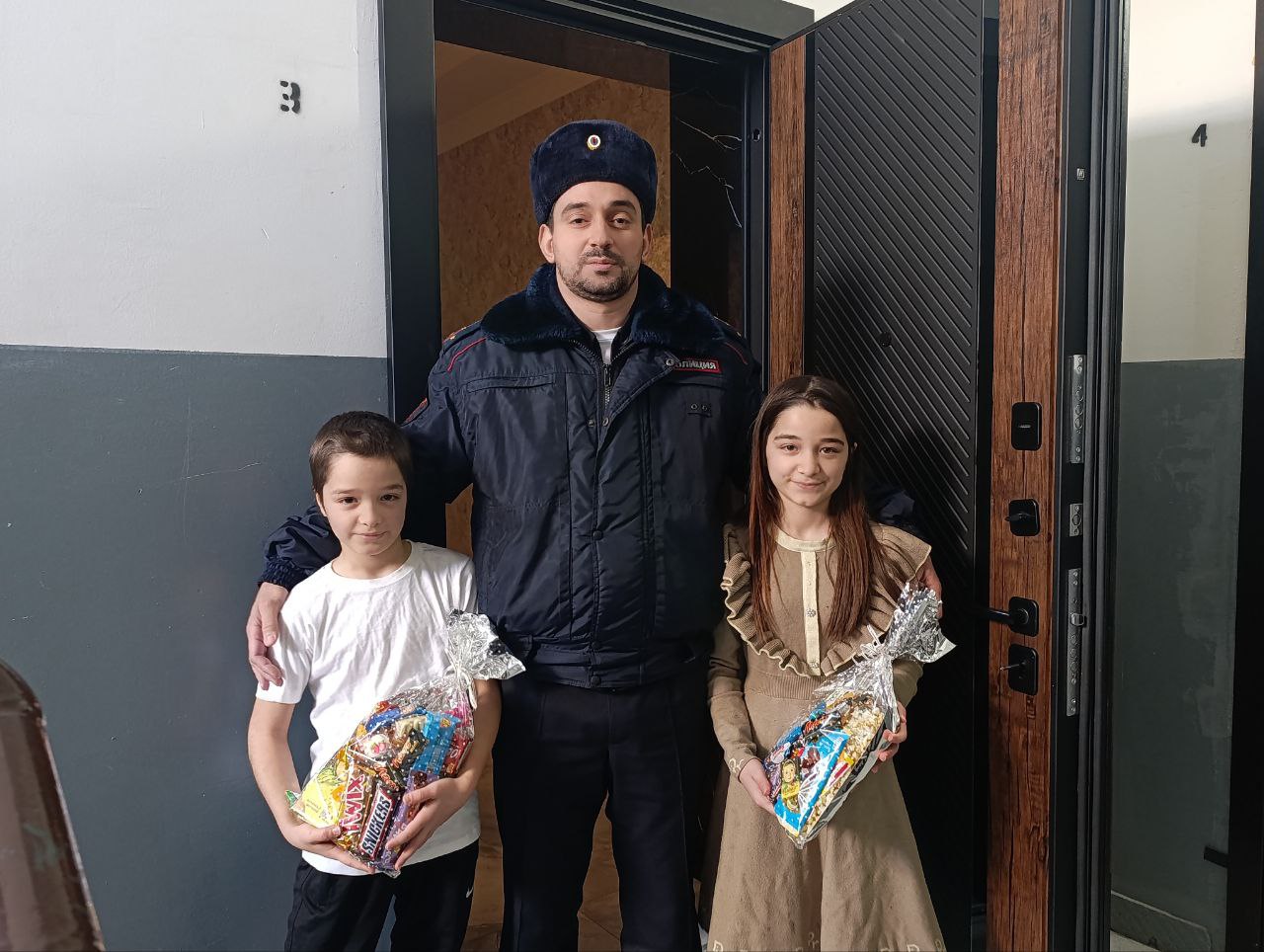 По инициативе Министра внутренних дел по Республике Ингушетия генерал-майора полиции Владимира Котова в рамках Всероссийской акции «Полицейский дед Мороз» сотрудники ОМВД России по г. Назрани по поручению начальника отдела полковника полиции Илеза Килиматова навестили семьи сотрудников органов внутренних дел, погибших при исполнении служебного долга, а также семьи своих действующих коллег.