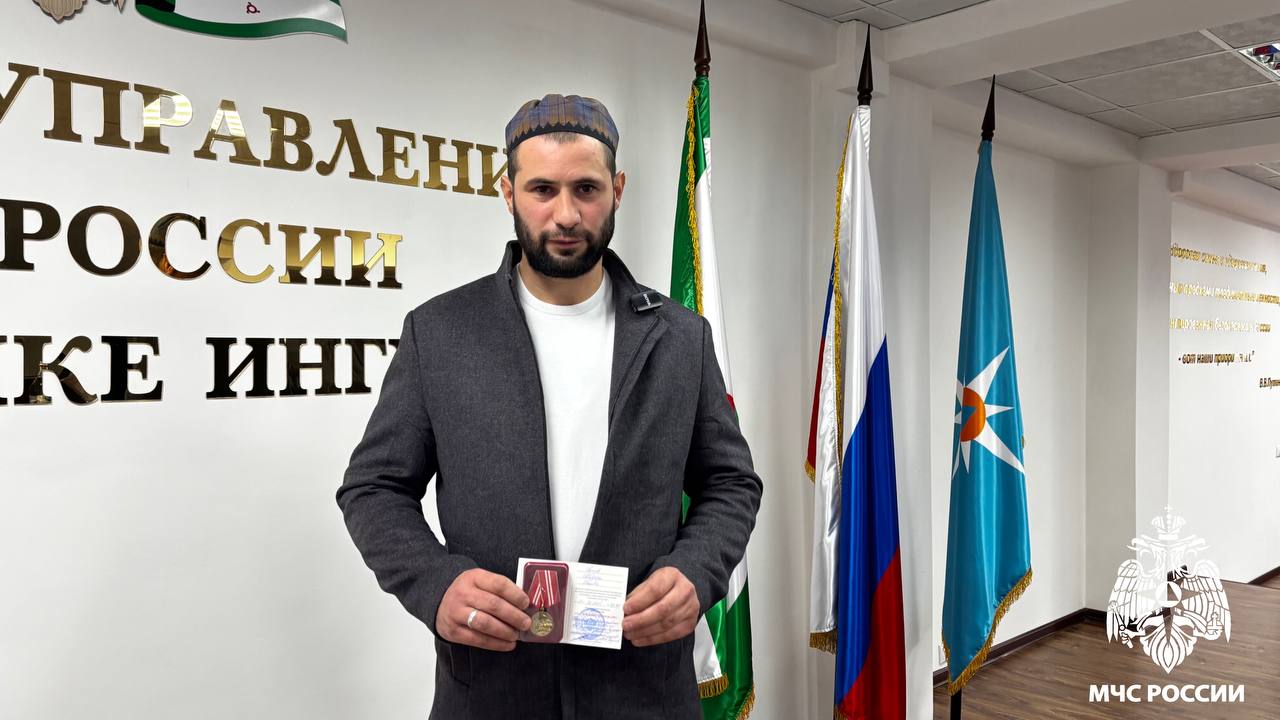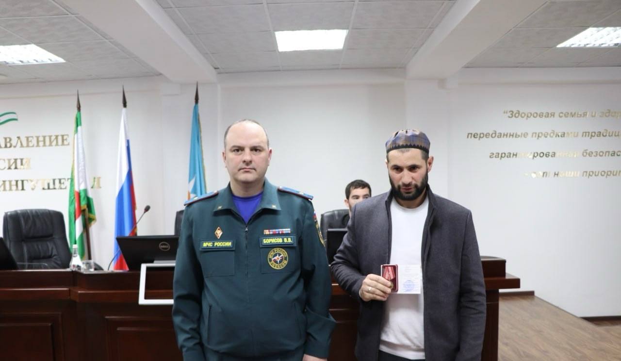 Жителя сельского поселения Вознесеновское, спасшего людей на пожаре, наградили медалью МЧС России «За спасение на пожаре». Торжественная церемония прошла накануне в Главном управлении МЧС России по Республике Ингушетия.