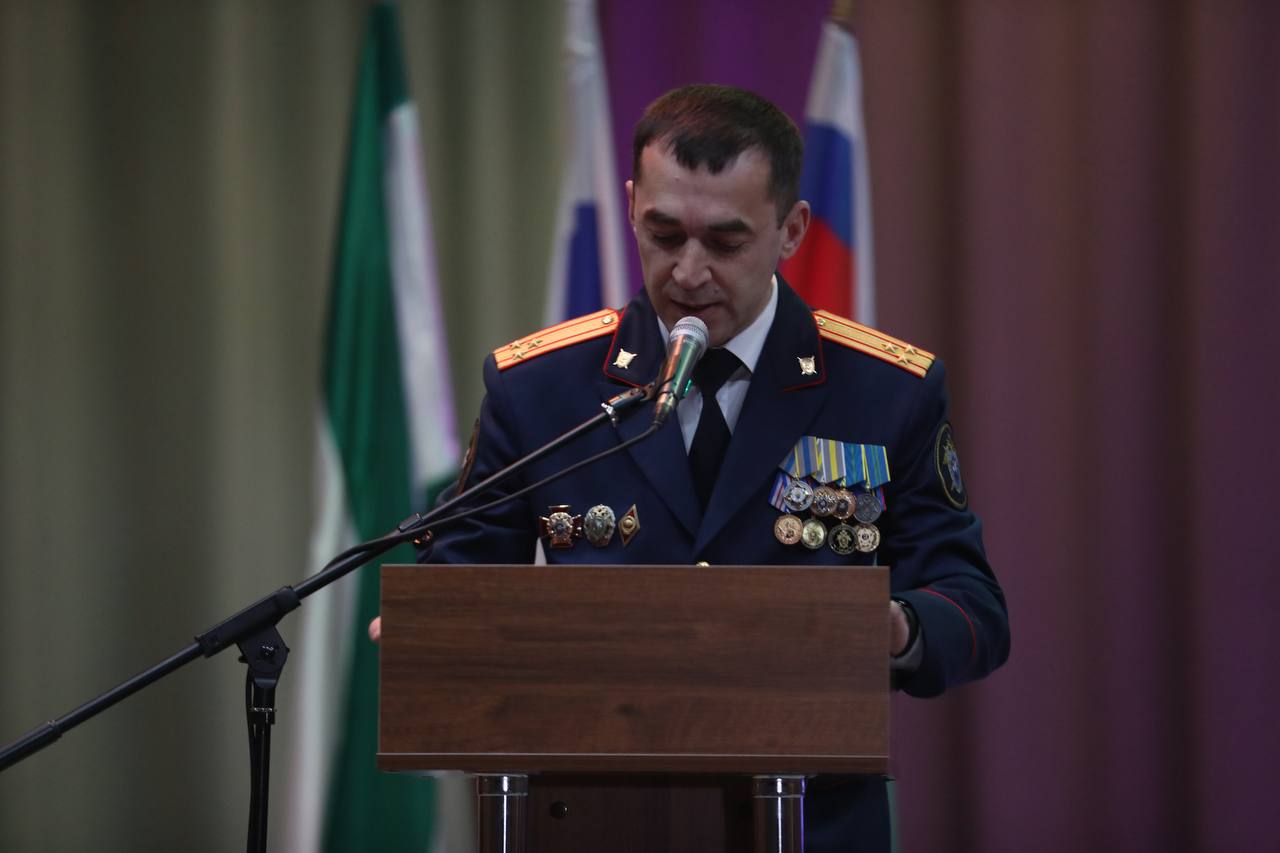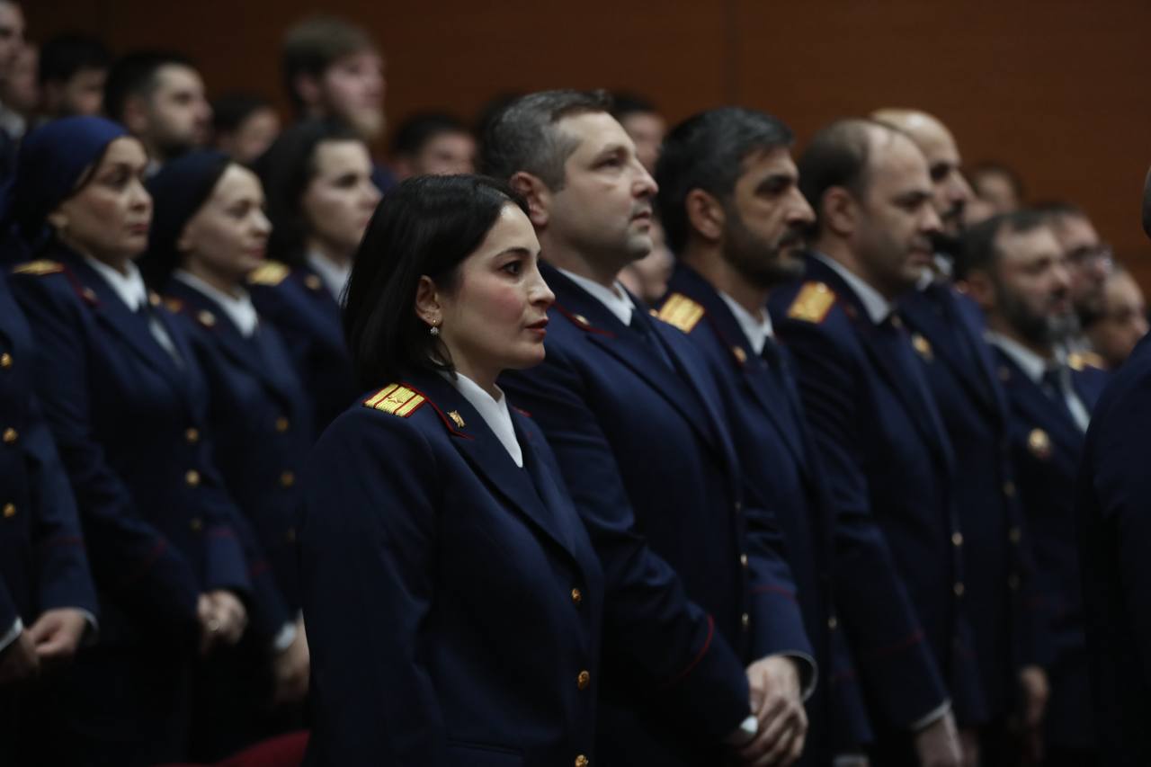 С приветственным словом и поздравлениями к личному составу и ветеранам следственных органов обратился Глава Республики Ингушетия Махмуд-Али Макшарипович Калиматов. В своей речи он подчеркнул значимость труда следователей для укрепления законности и правопорядка в регионе. Глава республики вручил награды отличившимся сотрудникам. Почетного звания «Заслуженный юрист Республики Ингушетия» удостоены заместитель руководителя следственного управления полковник юстиции Ш.М. Котиев и следователь-криминалист майор юстиции А.М. Евлоев, Почетной грамотой Республики Ингушетия награжден майор юстиции М.Х. Галаев, благодарность Главы Республики Ингушетия объявлена старшему лейтенанту юстиции Р.И. Ганижеву и майору юстиции З.М.-Г. Цечоевой.