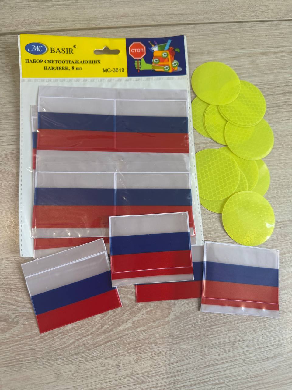 ученикам были розданы световозвращающие наклейки, которые дети с удовольствием приклеили на свои портфели!