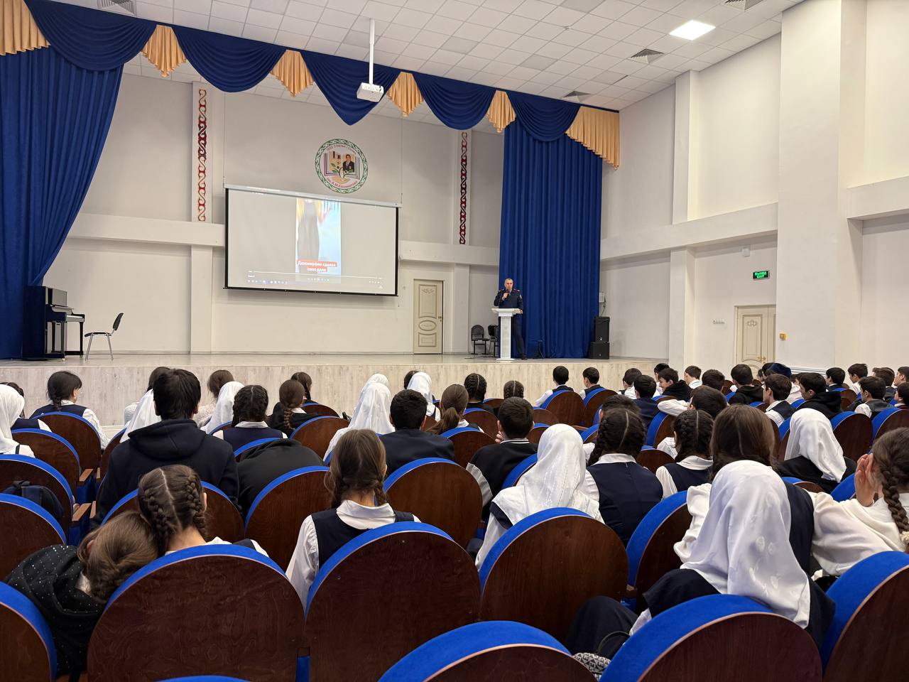Лекция проводилась с учащимися 9, 10 и 11 классов, а также для учащихся кадетского класса Следственного комитета России в ГБОУ Средняя общеобразовательная школа 4 г. Сунжа им. А.М. Калиматова.