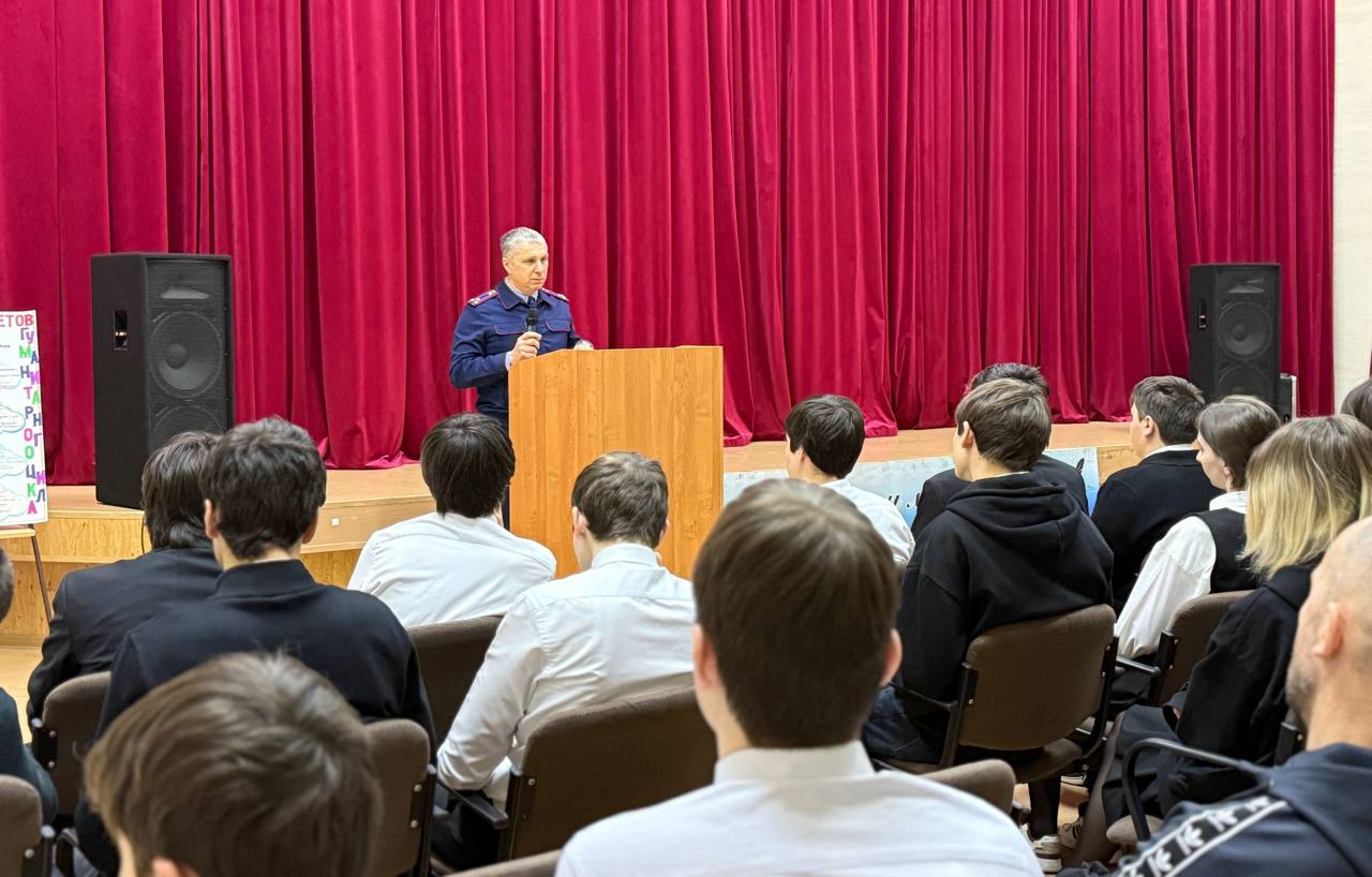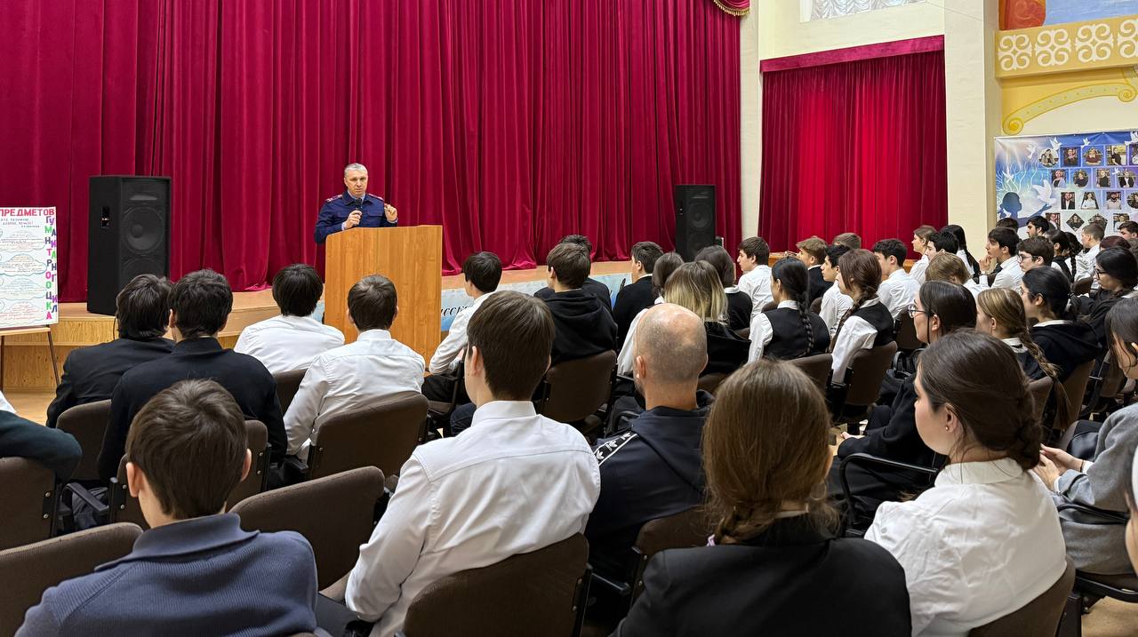 Сотрудник следственного управления Следственного комитета Российской Федерации по Республике Ингушетия Георгий Вахтангович Семенюк провел профилактическую беседу с учащимся 8, 9, 10 и 11 классов, а также учащихся кадетского класса Следственного комитета России в ГБОУ Средняя общеобразовательная школа детский сад 1 города Магас.