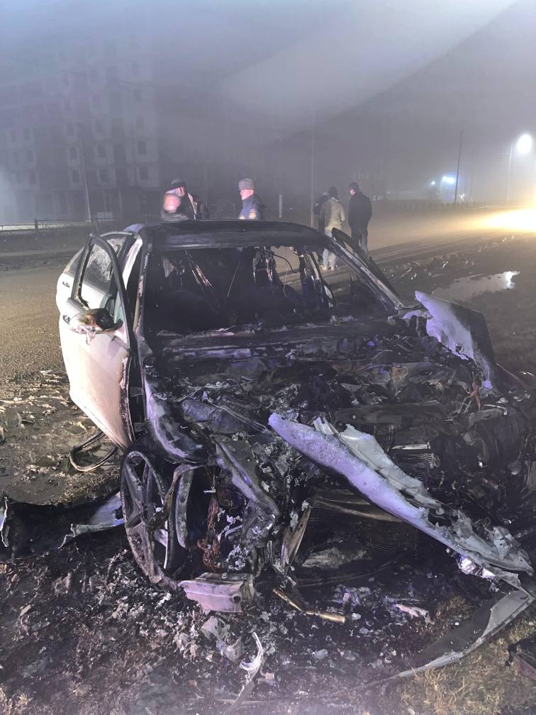 В Ингушетии инспектор ДПС, рискуя жизнью, спас пассажира из автомобиля, загоревшегося после ДТП