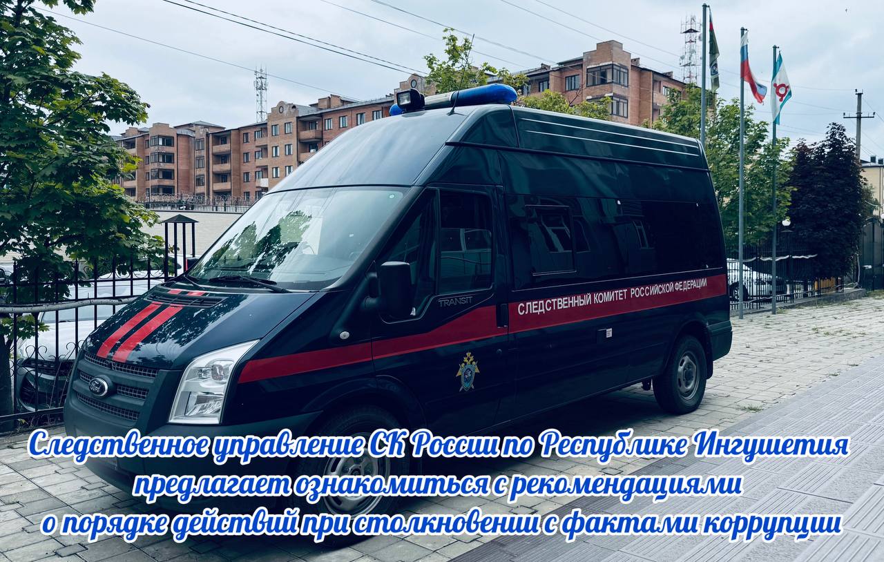 Следственное управление СК России по Республике Ингушетия предлагает ознакомиться с рекомендациями о порядке действий при столкновении с фактами коррупции