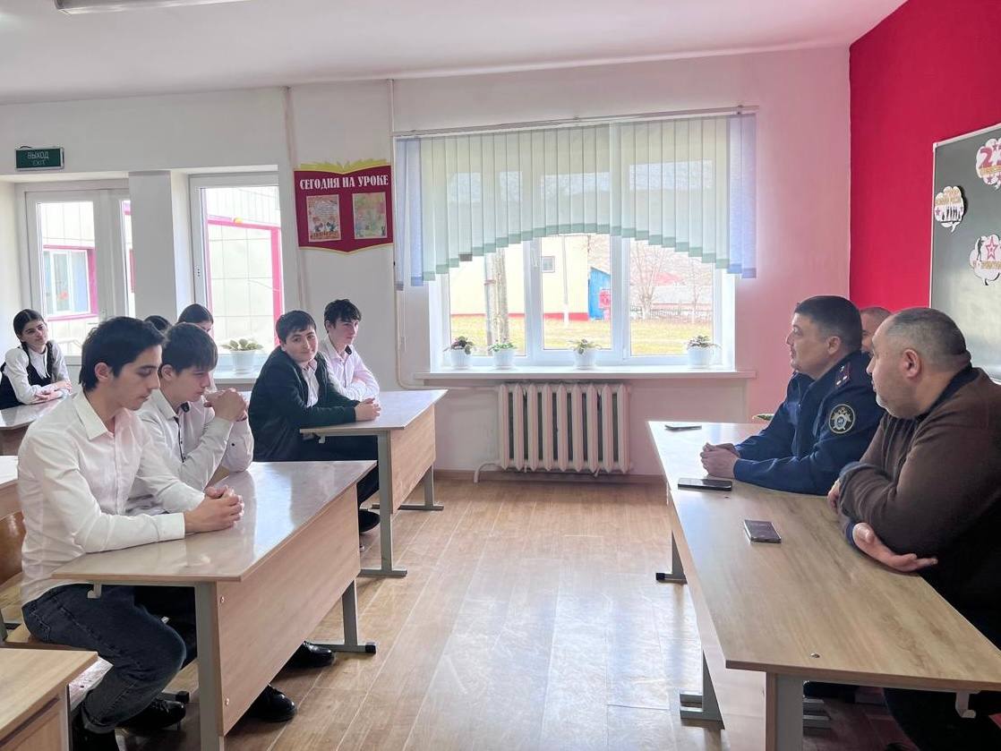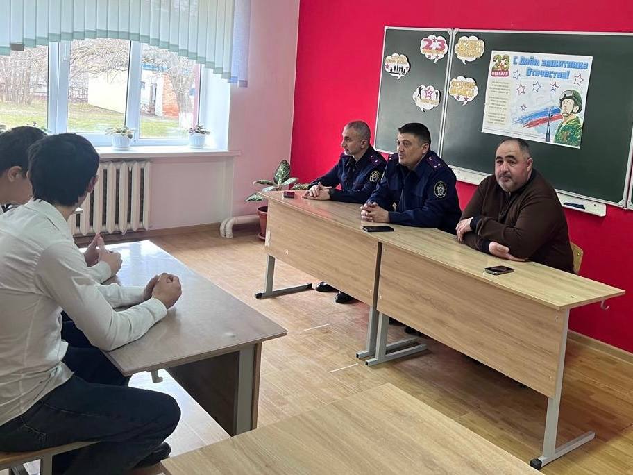 В преддверии празднования Дня защитника Отечества сотрудники следственного управления Следственного комитета Российской Федерации по Республике Ингушетия, помощник руководителя по общественно-политической работе Умар Горчханов и старший следователь первого отдела по расследованию особо важных дел Ахмедхан Евлоев, провели урок мужества и профилактическую беседу для учащихся ГБОУ «Средняя общеобразовательная школа № 2 с.п. Яндаре им. Р.А. Ганижева».