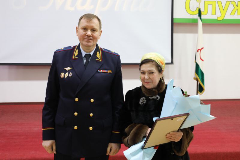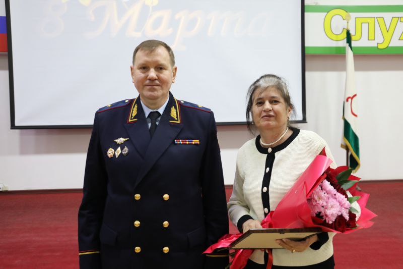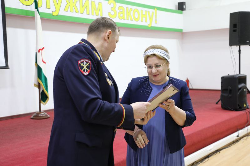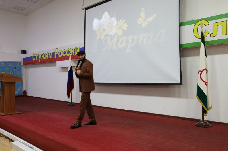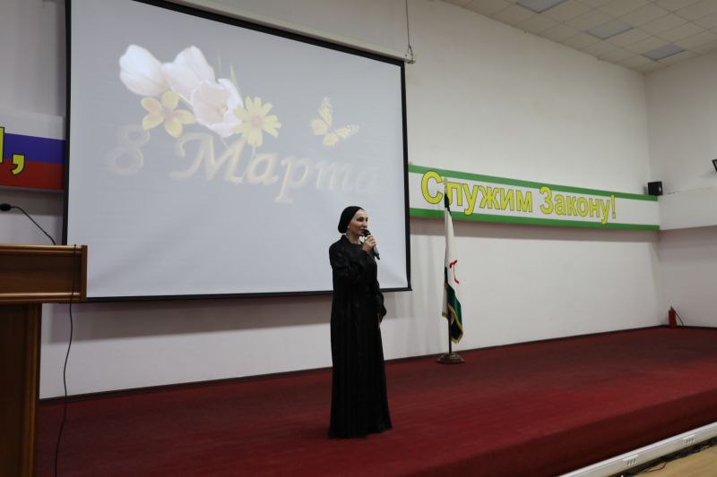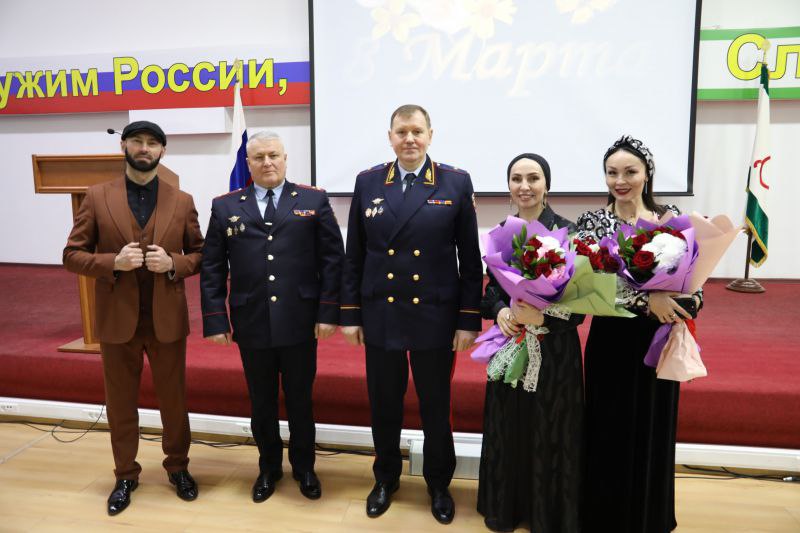Накануне в актовом зале министерства по поручению Министра внутренних дел республики было организовано праздничное мероприятие, посвящённое Международному женскому дню. По приглашению руководства министерства и Общественного совета при региональном МВД в концерте приняли участие заслуженные артисты Республики Ингушетия Зара Аушева Рахман Беков и Белла Базоркина.