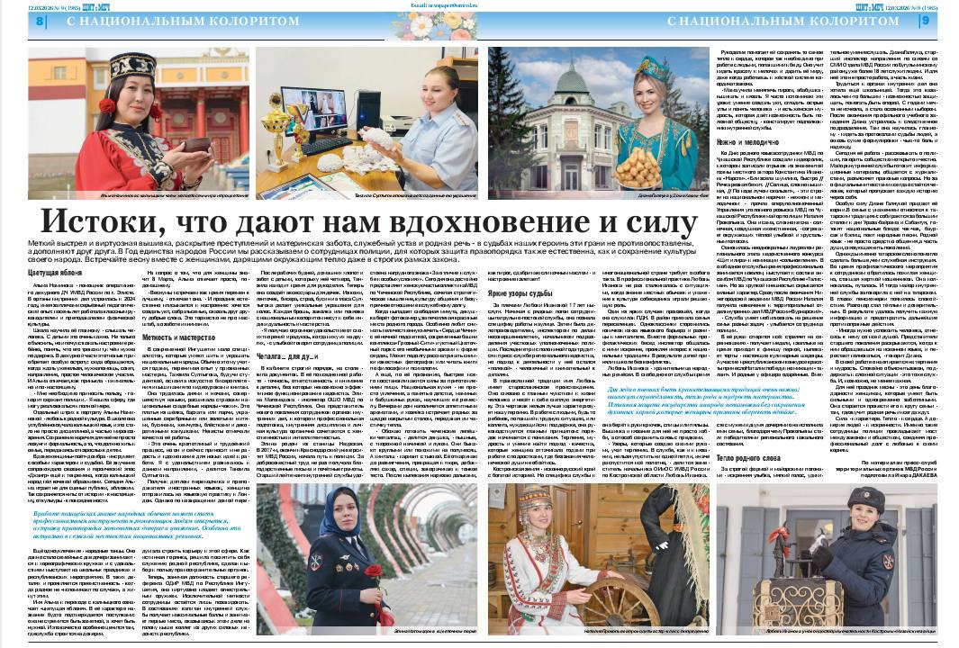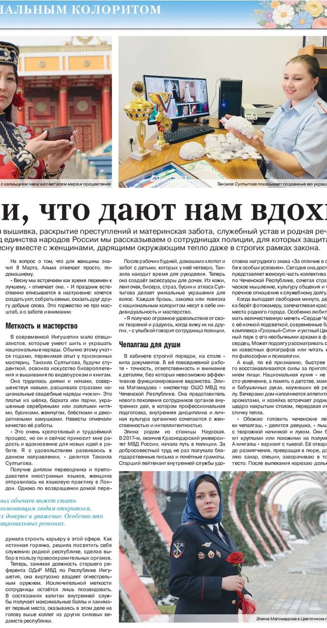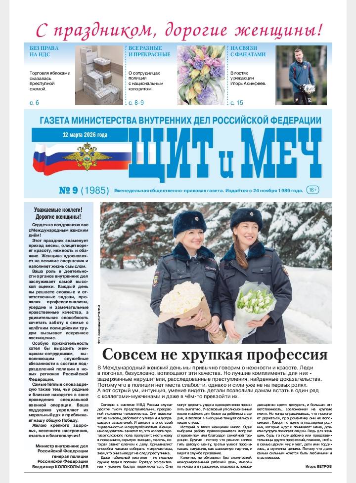 В свежем номере федеральной ведомственной газеты "Щит и меч" опубликована статья о сотруднице полиции Ингушетии Танзиле Султыговой. Читайте №9 от 12 марта 2026 года