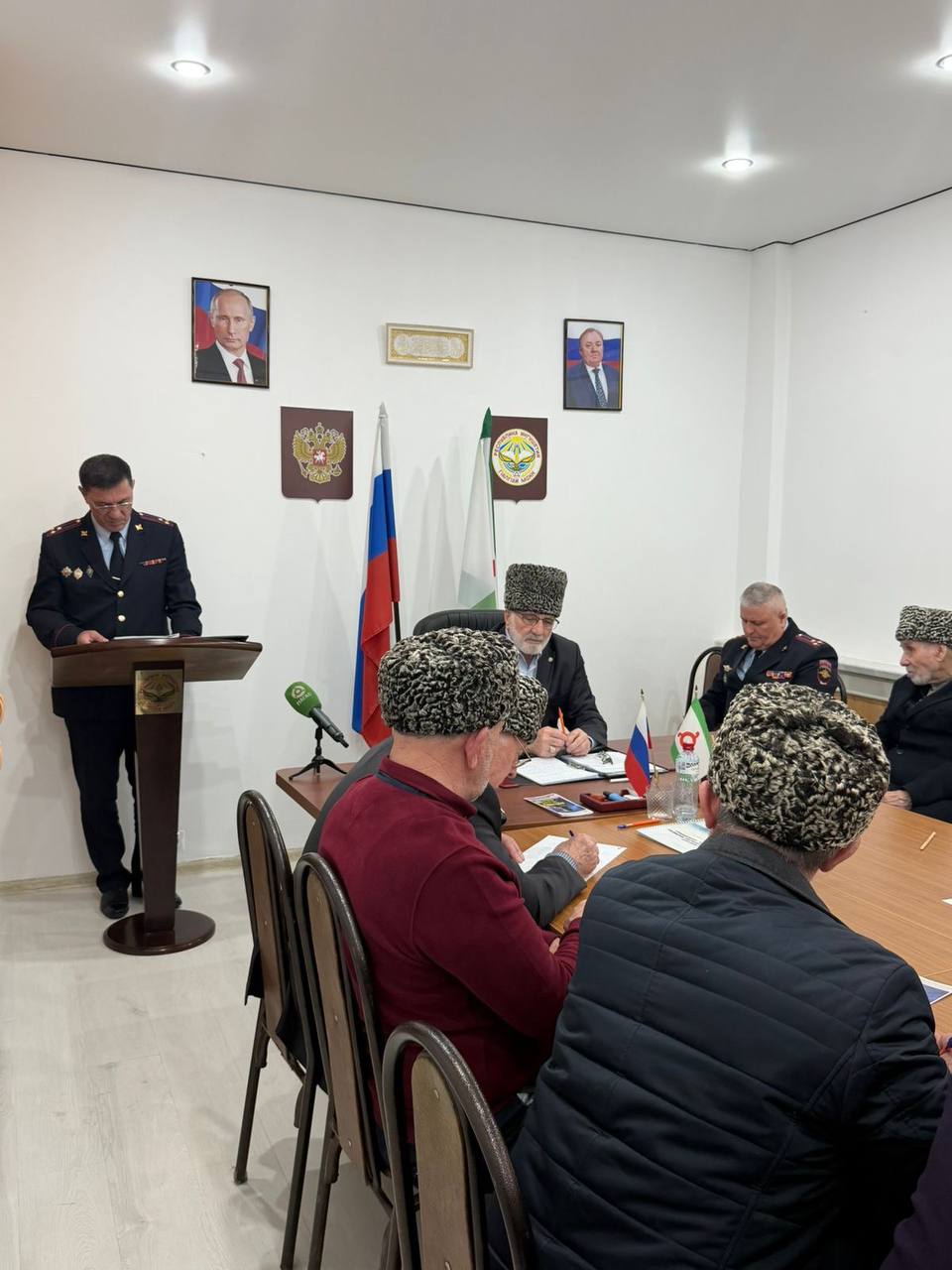 Накануне в здании администрации города Назрани прошло заседание Совета старейшин в котором приняли участие заместитель Министра внутренних дел по Республике Ингушетия полковник полиции Багомед Маммаев, временно исполняющий обязанности начальника управления Госавтоинспекции регионального МВД полковник полиции Султан Зурабов, член Общественного совета при ГУ МВД России по СКФО председатель Общественного совета при МВД по Республике Ингушетия Муса Гадиев и председатель Совета ветеранов регионального МВД Магомедсали Котиев.