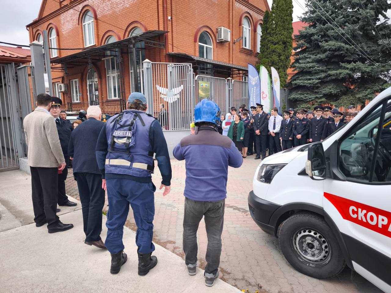 По легенде, в результате террористического акта возникла угроза для учащихся и персонала колледжа. Спасатели ПСО «Эрзи» совместно с другими оперативными службами продемонстрировали слаженную эвакуацию студентов из здания, а также отработали поиск пострадавших и их транспортировку в безопасную зону с помощью специального снаряжения.