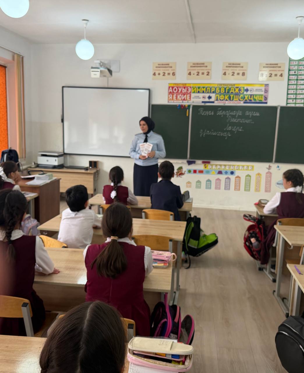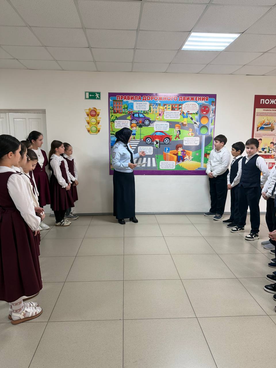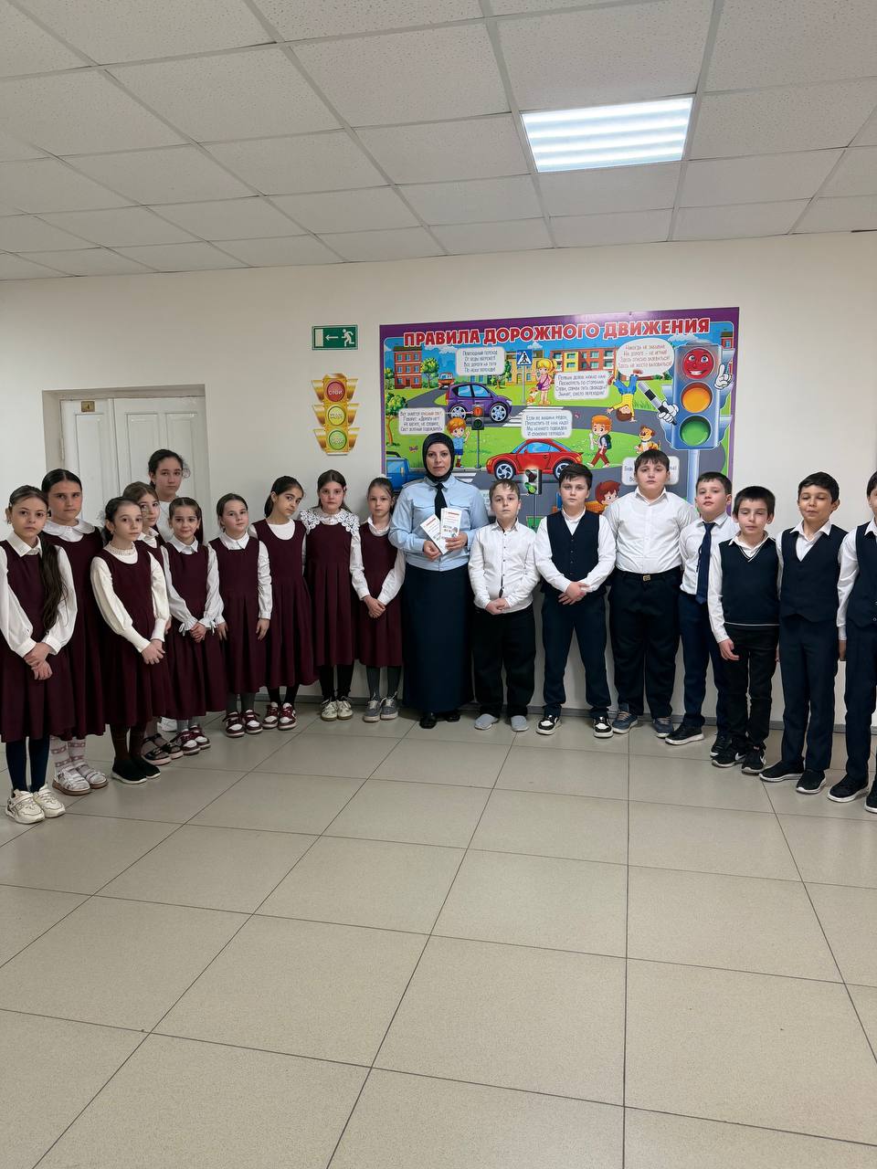 В целях профилактики детского дорожно-транспортного травматизма, а также в рамках профилактического мероприятия «Месячник безопасности дорожного движения» инспектор по пропаганде управления Госавтоинспекции провела урок дорожной безопасности с учащимися начальных классов школы №2 г.Назрань. Инспектор подробно разобрала с детьми места, предназначенные для безопасного перехода проезжей части, рассказала о необходимости ношения светоотражающих элементов в темное время суток и в условиях непогоды. Также объяснила учащимся какую опасность представляют при переходе дороги наушники, телефоны и капюшоны. Также ипояснила школьникам об опасности катания на средствах индивидуальной мобильности вблизи проезжей части.
