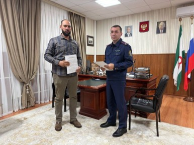 Руководитель следственного управления СК России по Республике Ингушетия Асхабов Ахмед Магомедович провел рабочую встречу с руководителем регионального отделения Всероссийского детско-юношеского военно-патриотического общественного движения «Юнармия»...