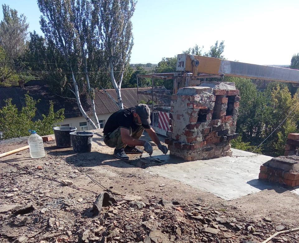 Силами аварийно-восстановительной бригады из Республики Ингушетия проводится ремонт кровли многоквартирного жилого дома по адресу: ул. Заводская, 2 в г. Молочанск.