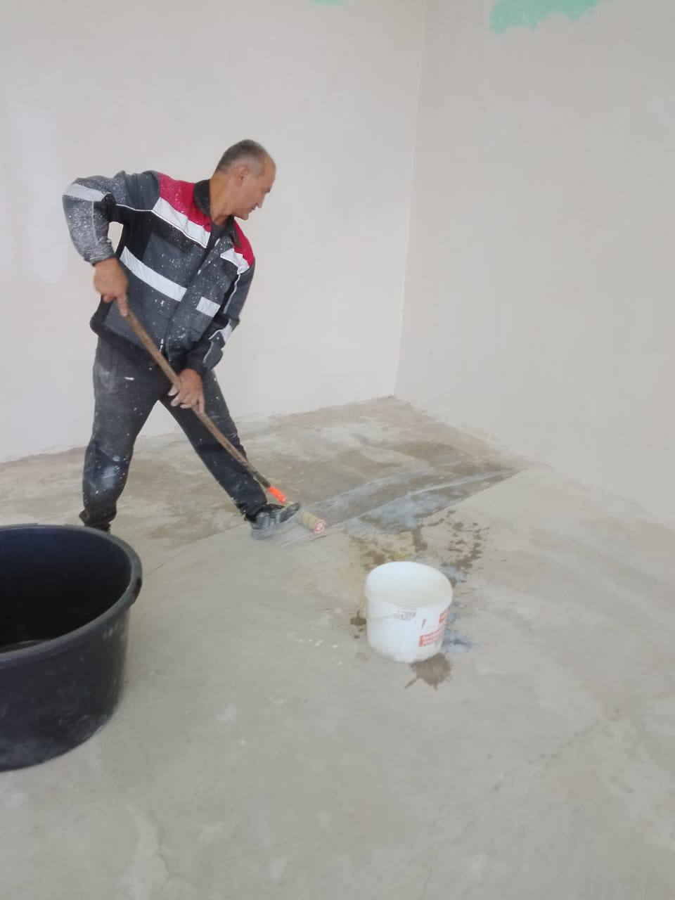 "В данный момент мы выполняем наиболее значимую работу – подготавливаем основание. Мы выравниваем стены в соответствии со всеми нормами и стандартами, чтобы обеспечить безупречно ровное нанесение краски впоследствии", – отмечают специалисты.