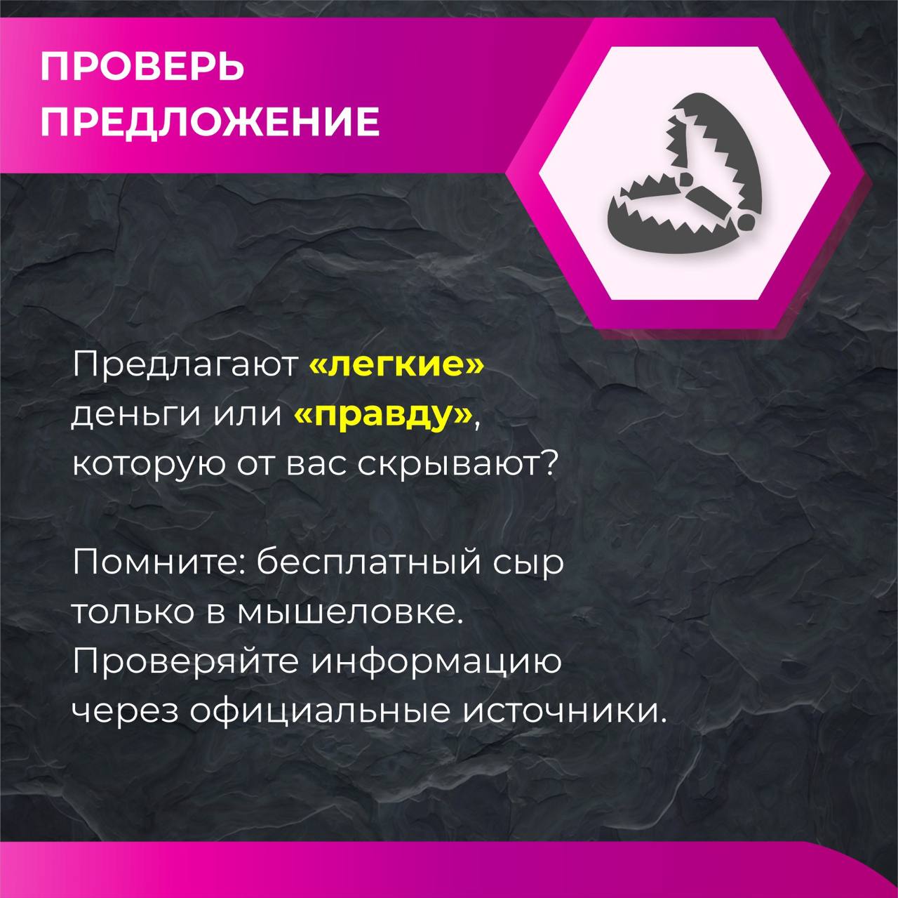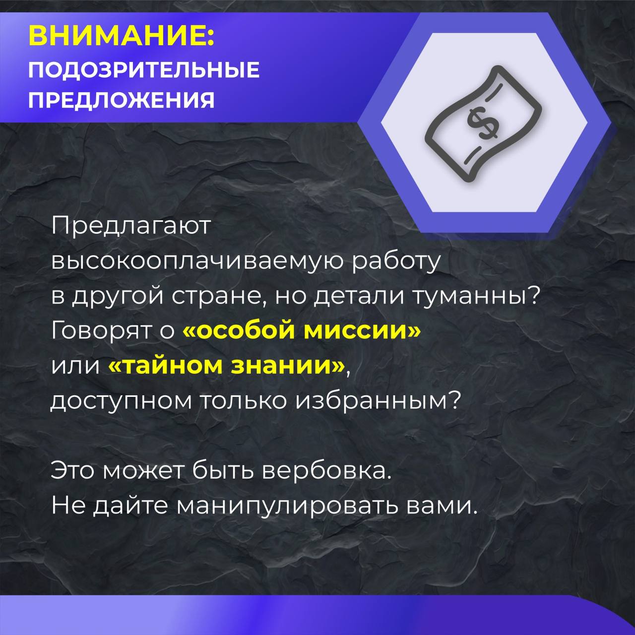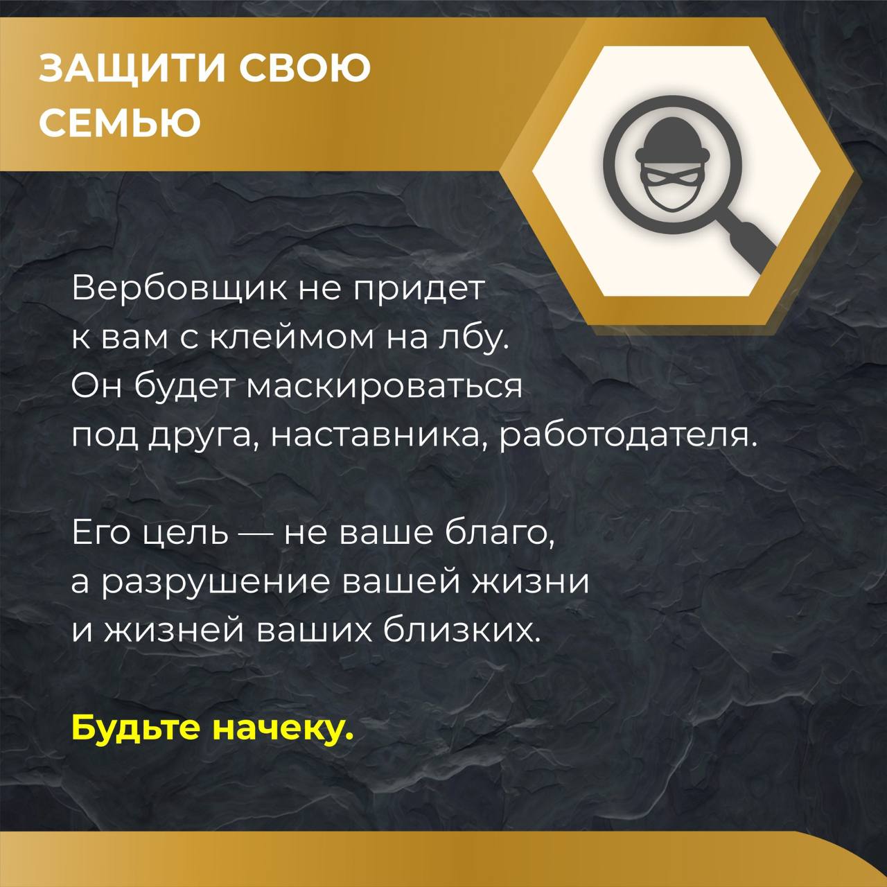 В современном мире важно уметь распознавать манипуляции и противодействовать вербовке в запрещенные организации. В карточках рассказали, как распознать вербовщиков и защитить себя и своих близких.