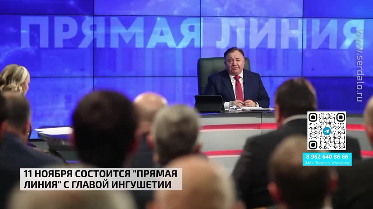 11 ноября в 17:00 на Национальном телеканале «Магас» состоится традиционная «Прямая линия» с Главой Ингушетии Махмуд-Али Калиматовым.Вы можете отправить свои вопросы по телефону:8(962)640-86-66(через мессенджеры MAX, Telegram и WhatsApp).Через...