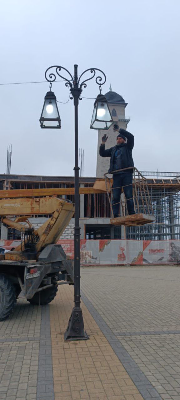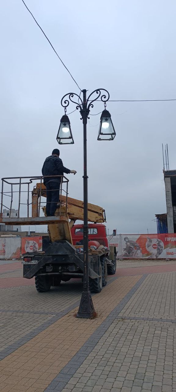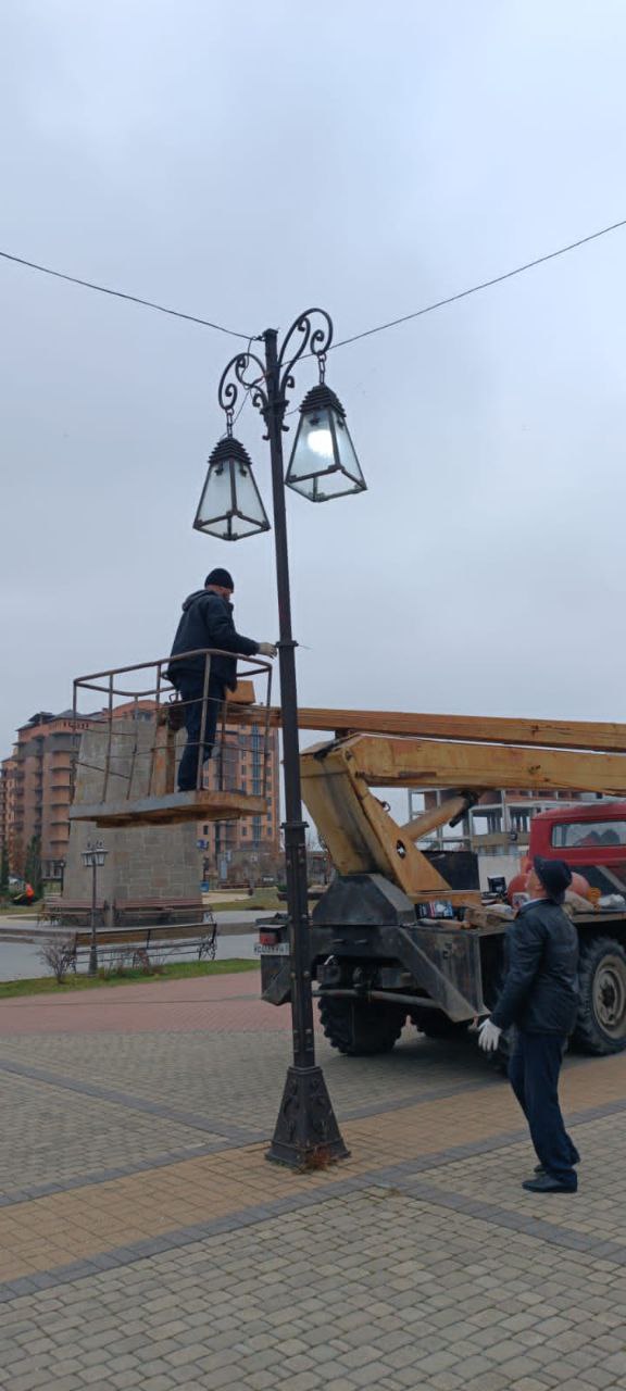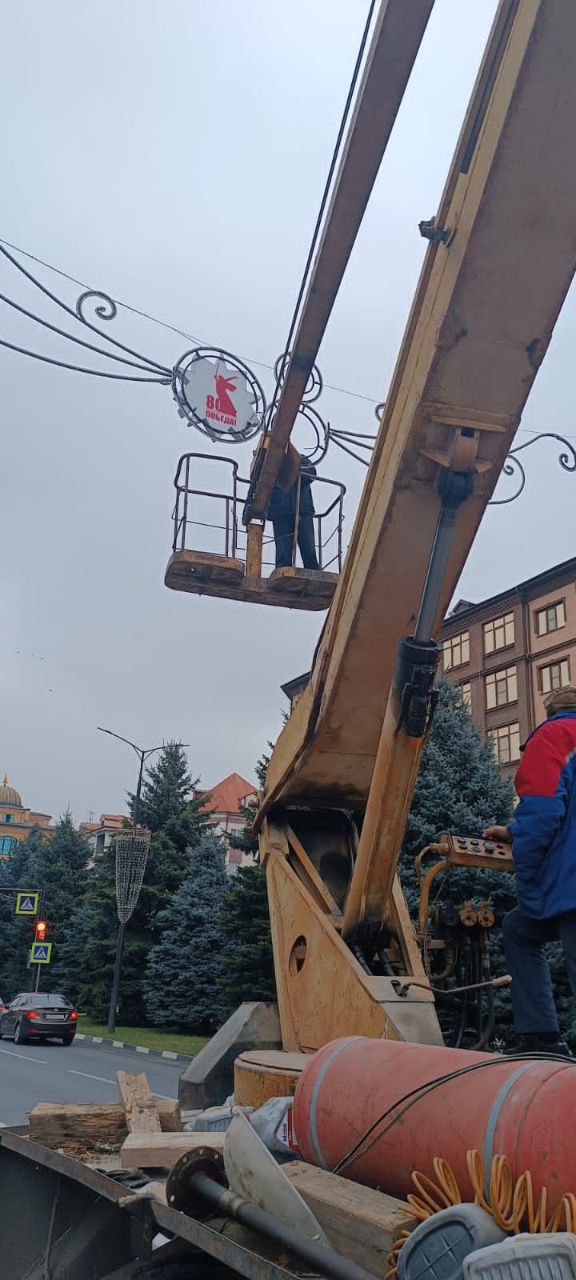 Сотрудники Электросети города обновляют инсталляцию и световые конструкции.