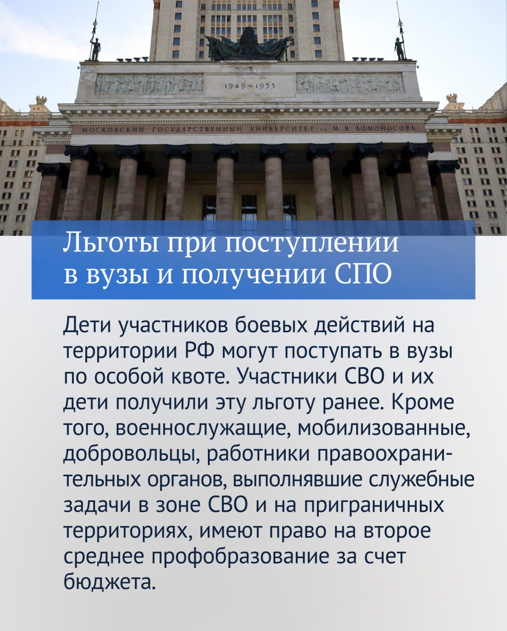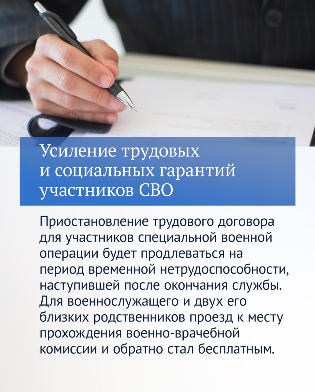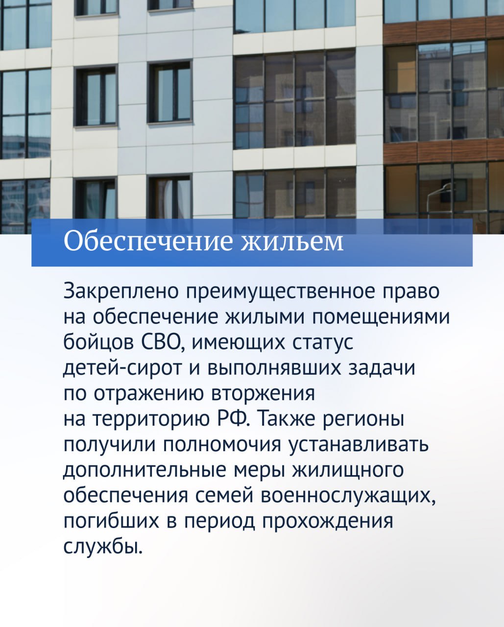 Председатель ГД подчеркивал: «Наш главный и безусловный приоритет — обеспечение специальной военной операции». В 2025 году было принято 30 законов, направленных на поддержку наших солдат и офицеров, их родных и близких, а всего с 2022 года — 154 закона в этой сфере. Расширен статус ветерана боевых действий. Упрощены присвоение воинских званий и назначение пенсий добровольцам. Для участников СВО появились новые льготы. «Наши воины, их семьи ни в чем не должны нуждаться. У нас этот вопрос на отдельном контроле», — отмечал Вячеслав Володин.