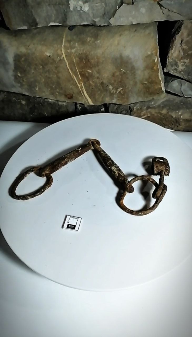 Жевало - металлический фрагмент удил - обнаруженное в башне №2 во время археологических раскопок 2024–2025 годов. Экземпляр сохранён достаточно хорошо.