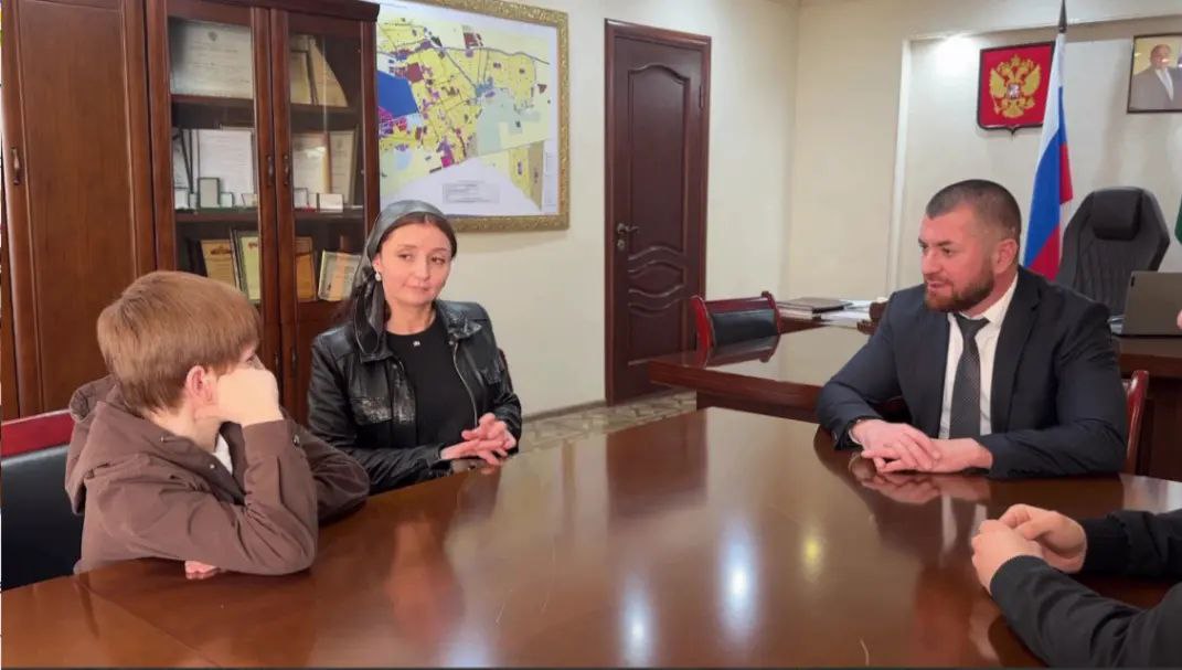 Мэр Сунжи Аслан Умаров и представитель фонда «Защитники Отечества» встретились с мальчиком и пожелали успехов.