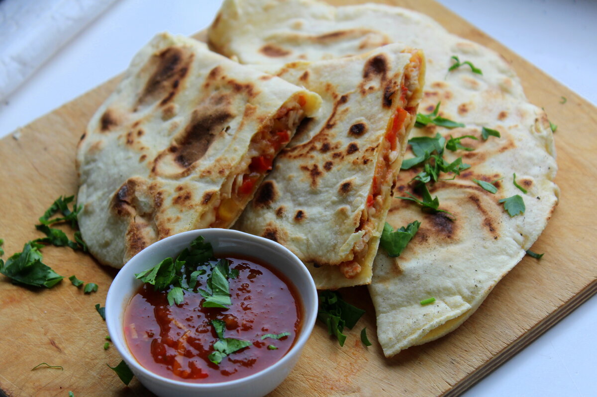 Кесадильи готовы к подаче и отлично сочетаются с острым томатным соусом. Приятного аппетита!