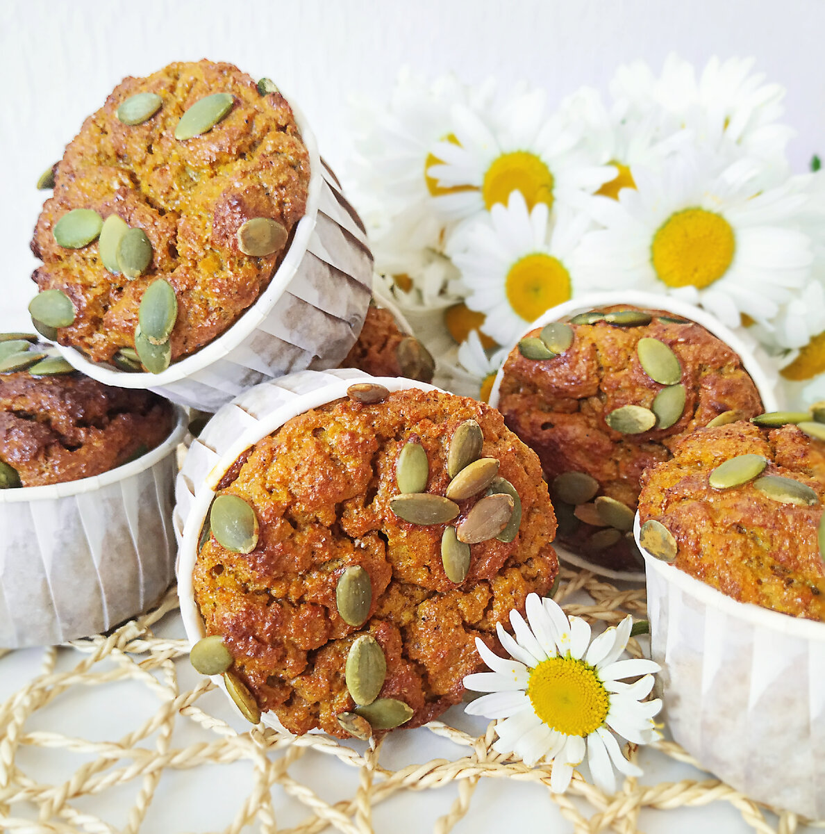 2. Разделить тесто по формочкам, наполняя их на две трети. Для украшения сверху можно посыпать тыквенными семечками (по желанию). Выпекать в заранее разогретой до 180°C духовке в течение 25–30 минут.