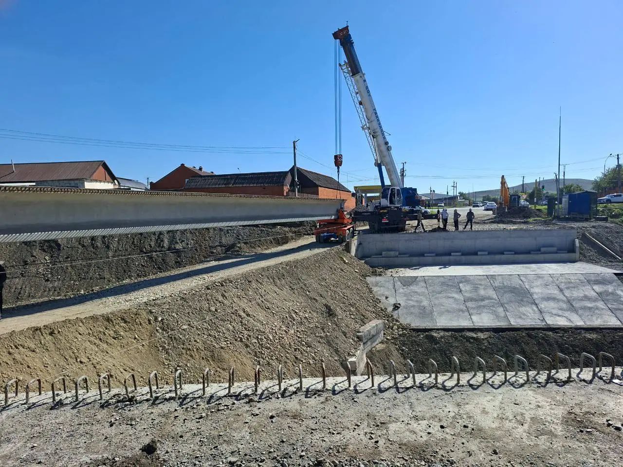 В сельском поселении Средние Ачалуки быстрыми темпами идет реконструкция моста, рабочие уже завершили укладку балок пролётных строений.