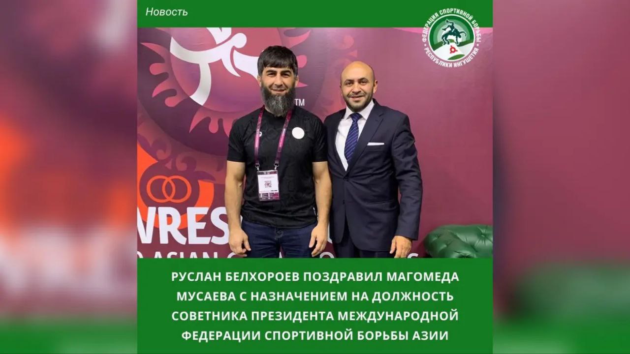 Вице-президент Федерации спортивной борьбы Ингушетии, известный спортсмен и наставник Магомед Мусаев, стал советником Мохаммеда Аль-Авамлеха, который возглавляет международную федерацию борьбы Азии.