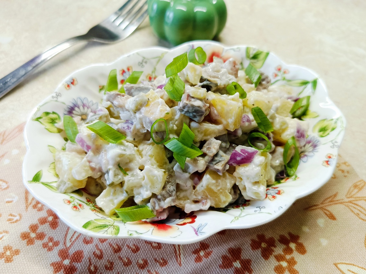Этот простой, но сытный картофельный салат с селедкой подарит вашим близким яркость вкусов и элегантность. Он станет настоящей звездой на любом праздничном столе благодаря своим нестандартным сочетаниям. Раскрываем секреты его приготовления!