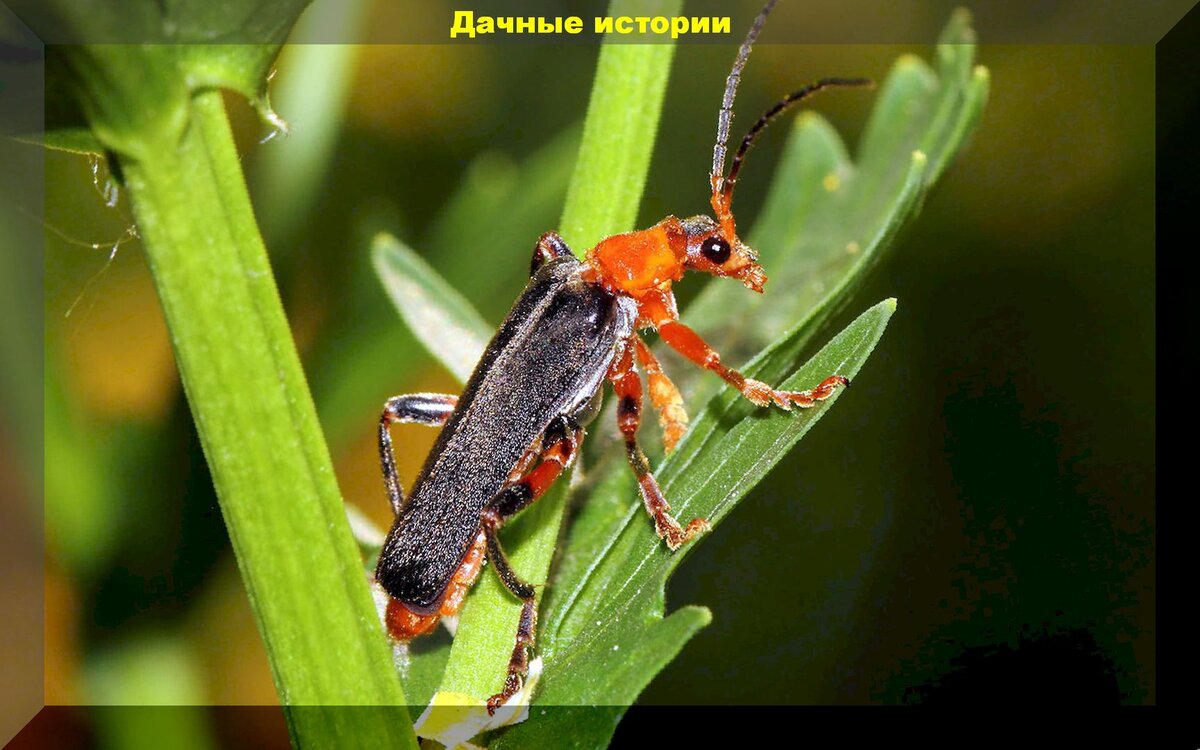 Жук-пожарник, или, как его народно называют, мягкотелка красноногая, легко узнать по внушительным размерам и яркой внешности: черное тело с красными передними лапками и головой делает его заметным на фоне зелени. Нередко дачники путают этого жука с вредителями, такими как бронзовка или клоп-солдатик, однако на самом деле это настоящий защитник ваших растений.
