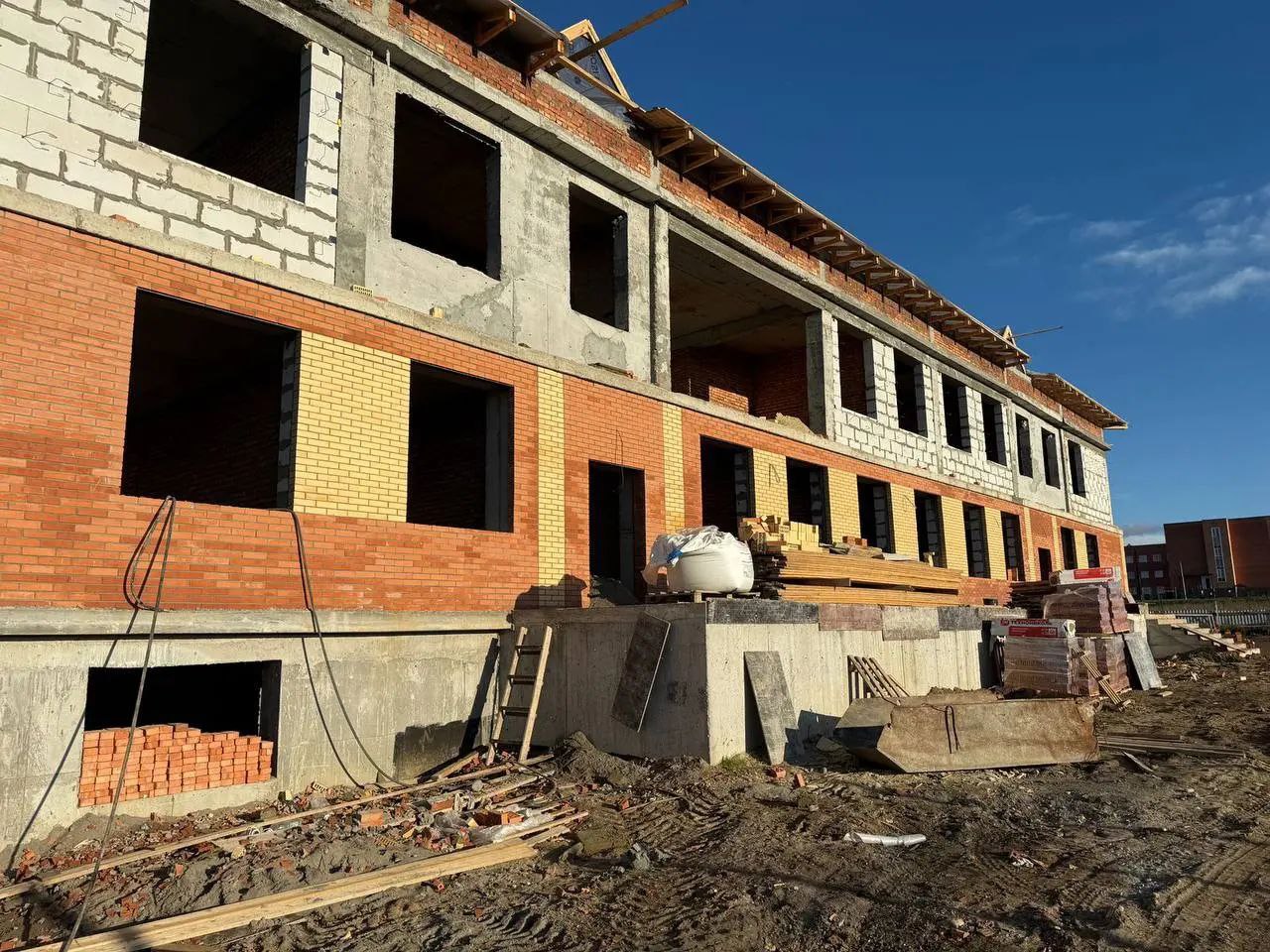 В целом на объекте завершены работы по возведению железобетонного каркаса здания, установлены стропила под кровлю, ведется кирпичная кладка наружных стен и внутренних перегородок, монтаж кабеля электроосвещения, строительство шахты лифта, наружных лестниц, пожарного резервуара, выгребной ямы и ограждения территории.