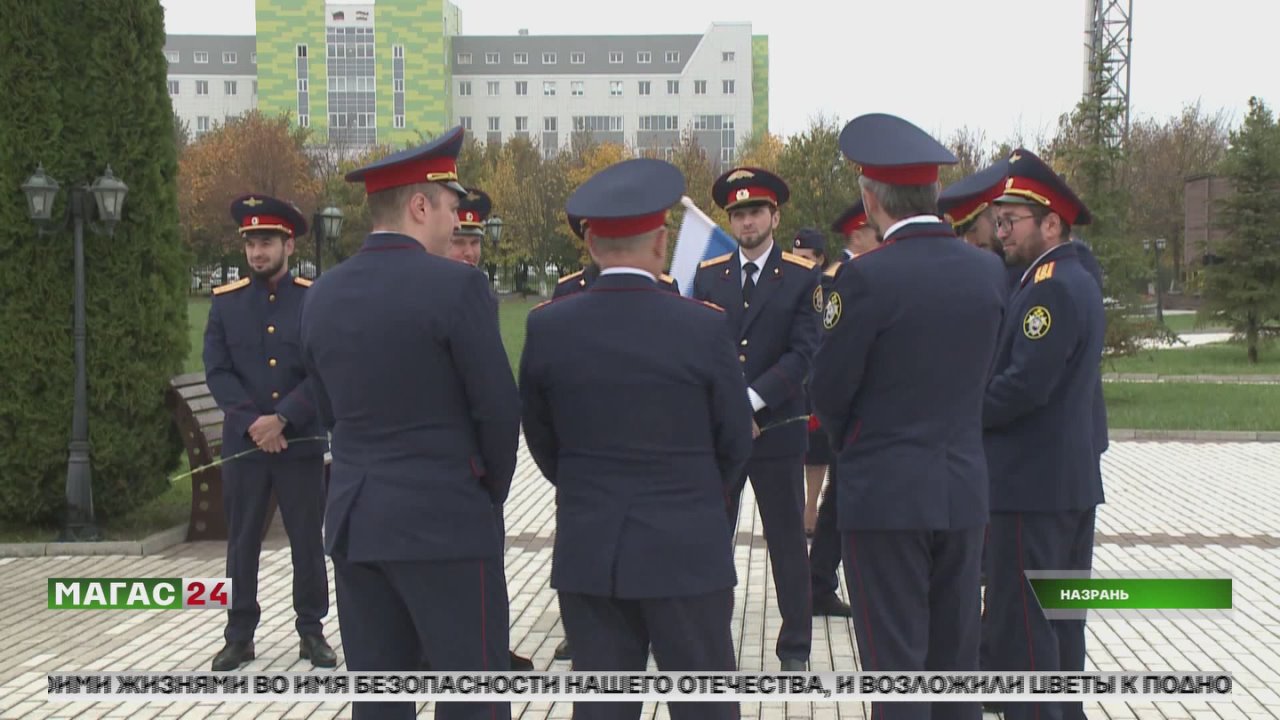 Участники акции почтили минутой молчания светлую память погибших при исполнении воинского долга коллег, пожертвовавших своими жизнями во имя безопасности нашего Отечества, и возложили цветы к подножию Мемориала.