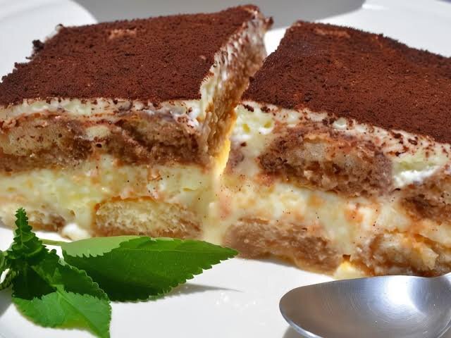2. Сборка: Окуните печенье в приготовленную пропитку и выложите первую часть в форму. На печенье нанесите слой крема, повторите процесс, пока не закончите все ингредиенты, и верхний слой должен быть кремом. Наконец, посыпьте какао-порошком и отправьте в холодильник на 4 часа для настаивания.