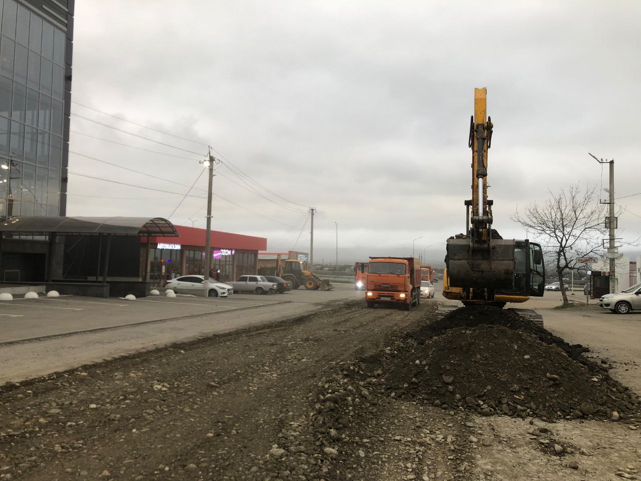 Подрядная организация продолжает капитальный ремонт и комплексное благоустройство участка автомобильной дороги по улице Орджоникидзе.