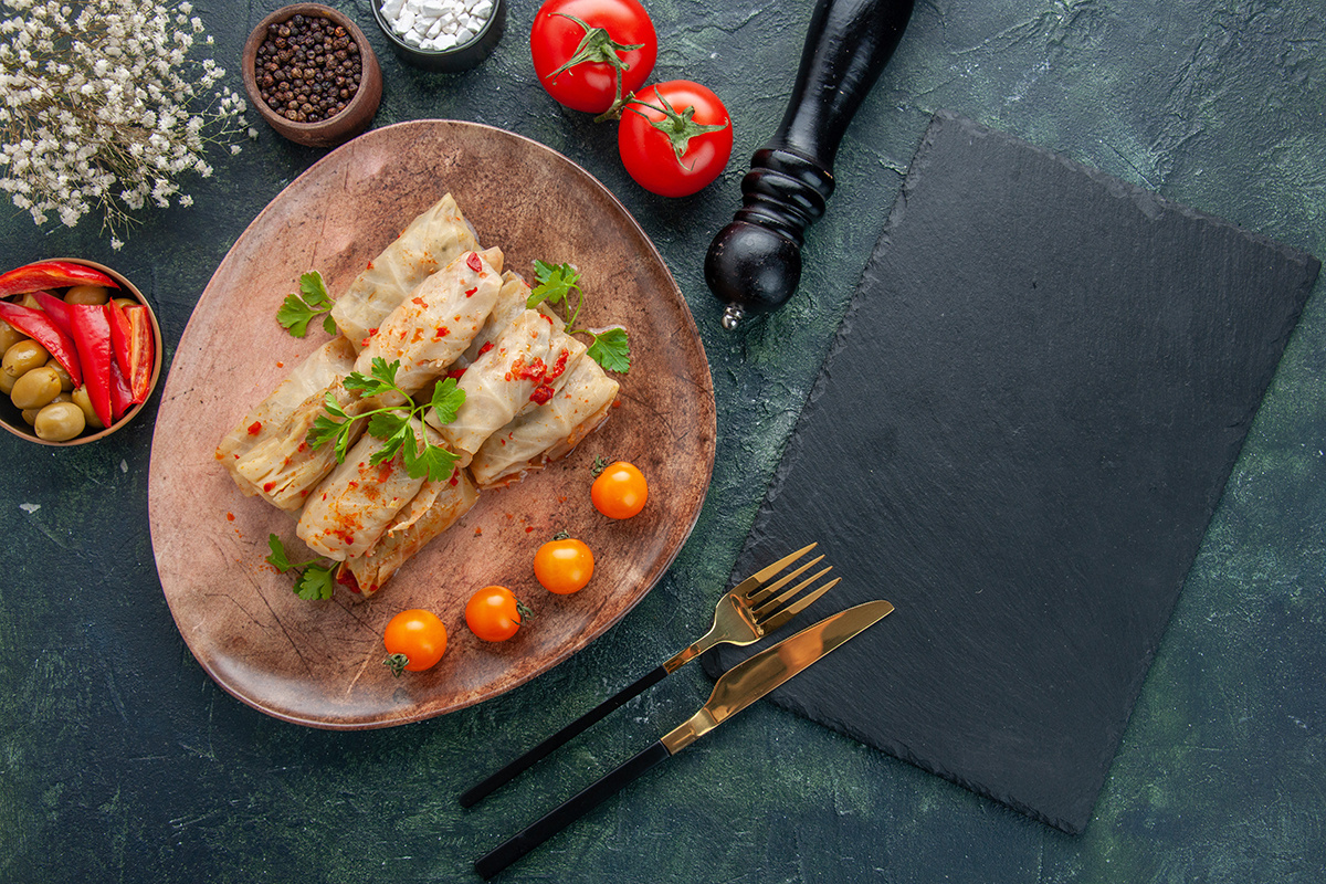 Первым шагом в процессе готовки являются капустные листья. Их нужно погрузить в кипящую подсоленную воду примерно на 5 минут, чтобы они стали мягкими. Затем остудите листья и нарежьте их на круги диаметром 8–10 см. В глубокой миске соединяют говяжий фарш с отварным рисом, добавляют соль и перец, тщательно перемешивая до однородности. Заворачивают начинку в капустные листья, формируя мини-голубцы, и аккуратно укладывают их в форму для запекания.