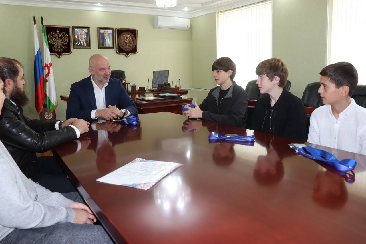 Сегодня в мэрии Назрани чествовали юных спортсменов из нашей республики, которые добились выдающихся результатов на международной арене по относительно новой дисциплине шахбокс.