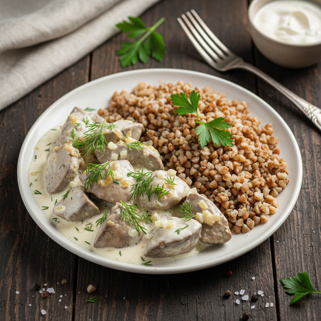 Куриная печень в сметанном соусе — это не просто полезный, но и невероятно вкусный ужин, готовящийся менее чем за 20 минут. Нежный соус обволакивает печень, делая ее удивительно сочной, а рассыпчатая гречка идеально дополняет этот сливочный дуэт.
