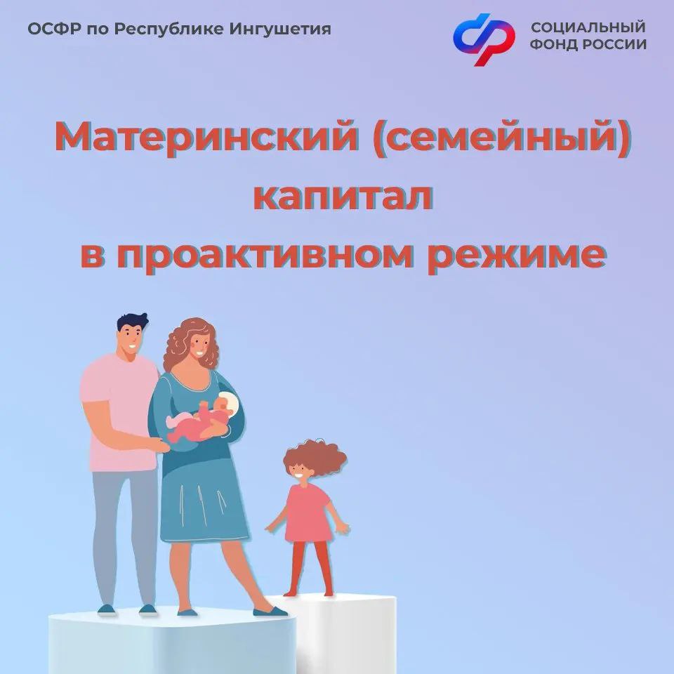 В республике с начала года 1 550 семей проактивно получили сертификаты на материнский капитал. Это стало возможным благодаря налаженному механизму автоматического обмена информацией между органами ЗАГС и СФР, сообщили газете «Ингушетия» в региональном отделении Социального фонда России.