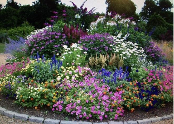 Для многолетников предпочтительны неприхотливые сорта, которые хорошо переносят зиму без использования химических средств. Смешивайте цветущие растения с декоративными кустарниками, такими как барбарис и азалии, чтобы разнообразить цветник и упрощать уход за ним.