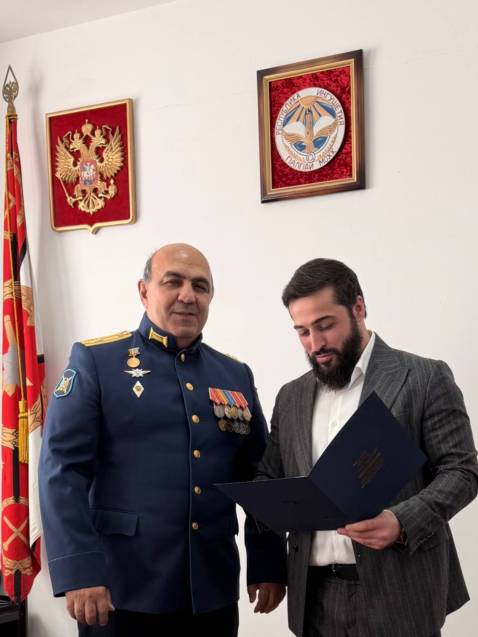 В День ракетных войск и артиллерии депутат Народного Собрания Республики Ингушетия от фракции ЛДПР Ислам Геланиевич Гадиев поздравил с профессиональным праздником депутата Народного Собрания, полковника в запасе, общественного и политического деятеля Бадрудина Заудиновича Олигова.