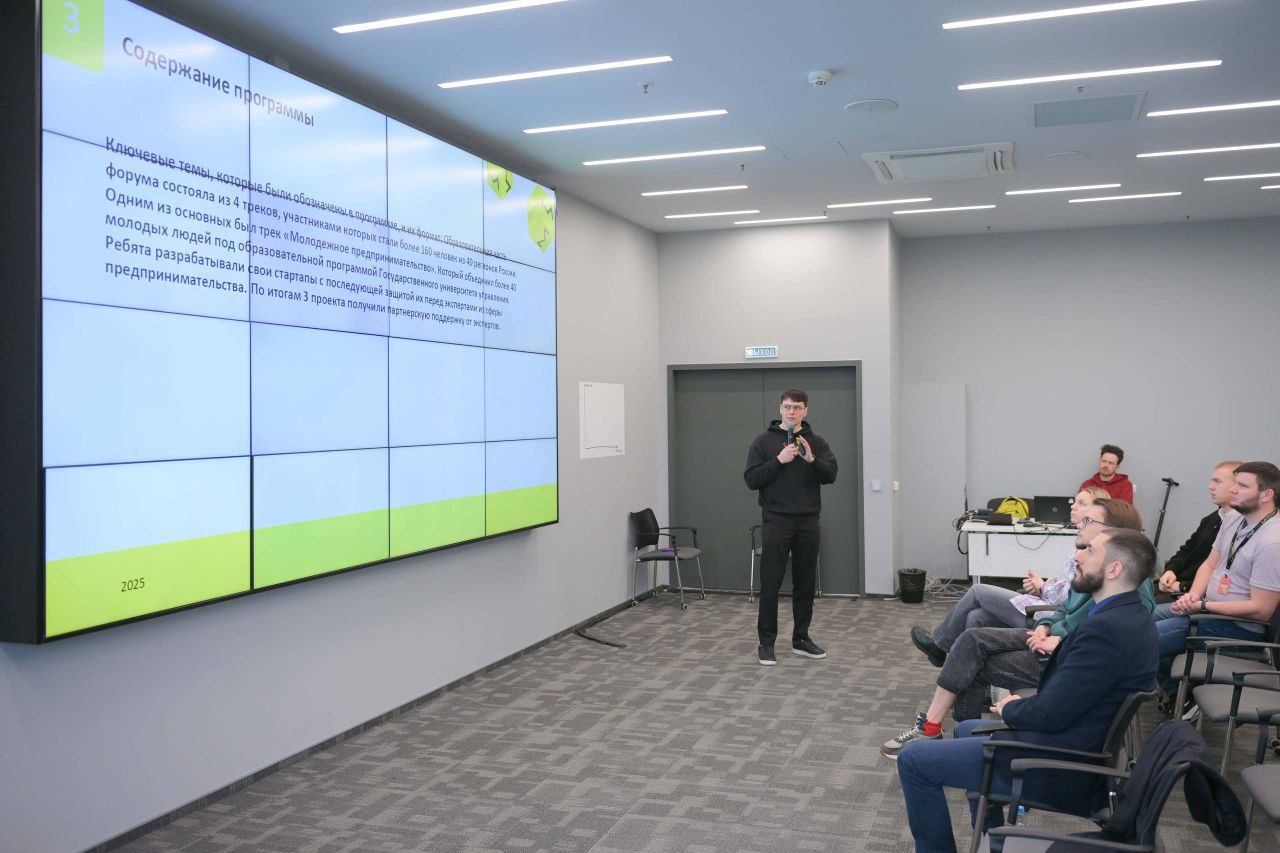 Докладчик от региона — представитель Дома молодежных организаций, курирующий программу «Росмолодежь.Предпринимай», Саид Гальмиев.