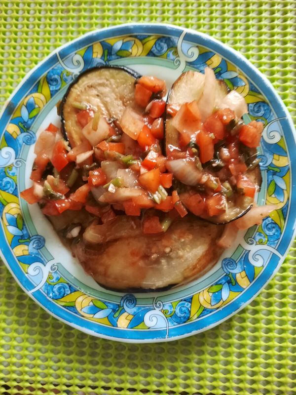 В этом рецепте речь идет не о консервировании, а о создании настоящего угощения для обеда. Обжаренные баклажаны, поданные с ярким салатом из свежих овощей, подарят незабываемый вкус и аромат.