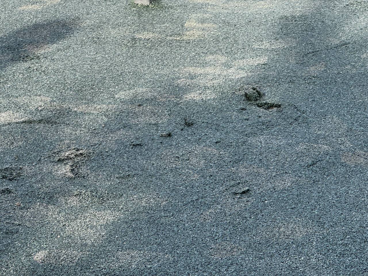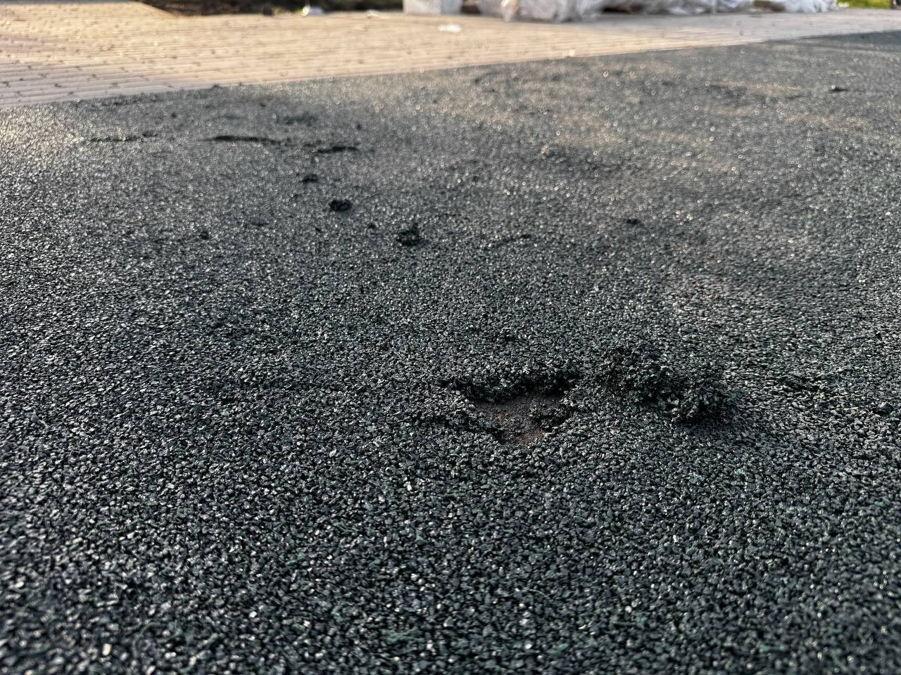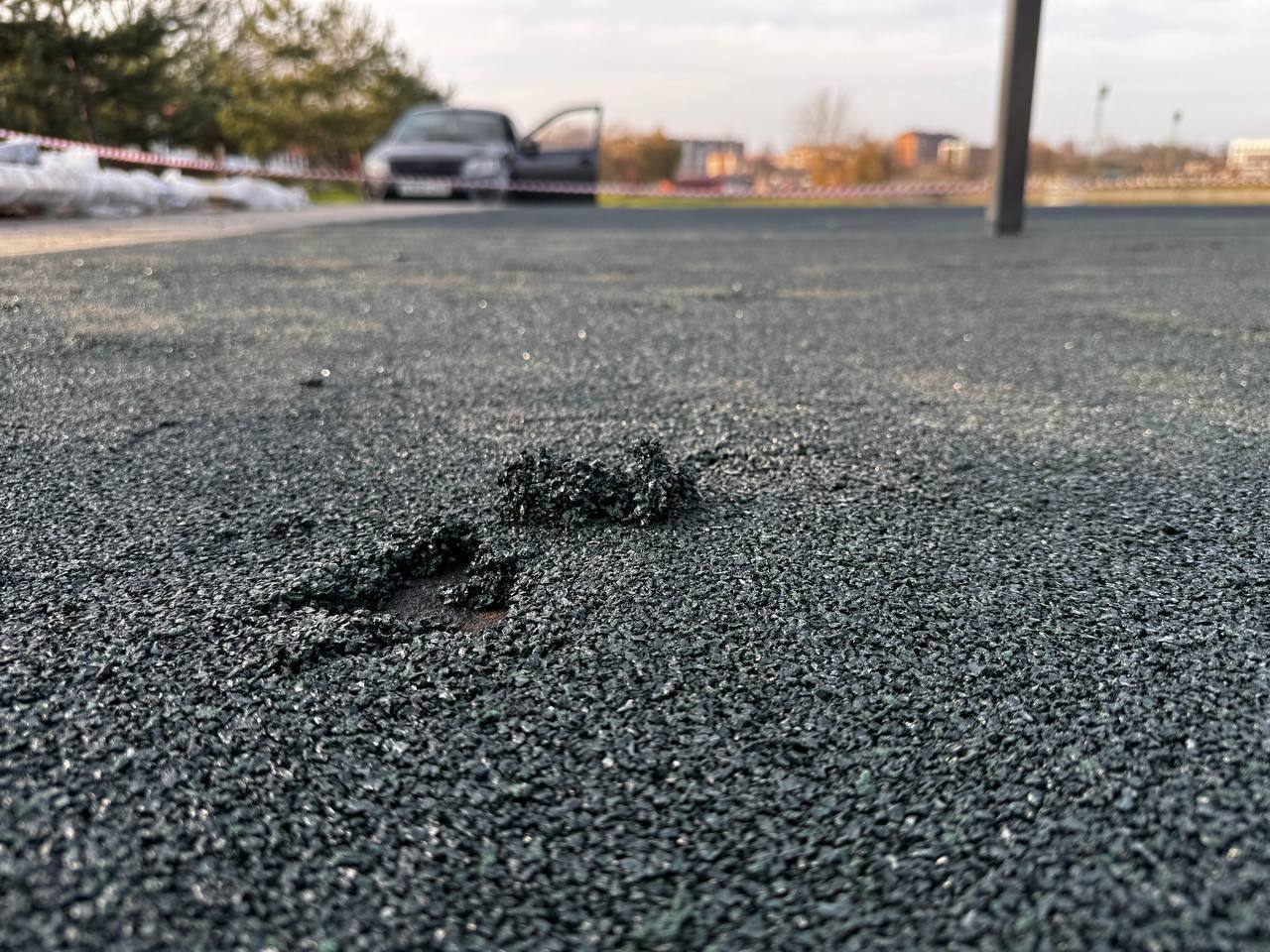 Но уже этой же ночью кто-то решил «прогуляться» по еще не застывшему покрытию и просто все испортил. Следы от обуви, поврежденная поверхность — результат чьей-то безответственности и неуважения к общему труду.